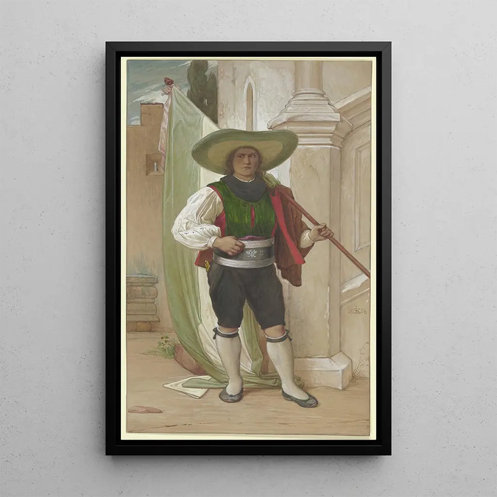 Kohteessa "Tyrolilainen lippukulkueen kantaja viinijuhlissa" Eduard von Steinle vangitsee kansanperinteen juhlan ytimen huomattavalla taidolla. Dynaaminen sommitelma korostaa lippukulkueen kantajaa, ylpeyden ja identiteetin symbolia, ympäröitynä kirkkailla väreillä, jotka herättävät tapahtuman ilon ja jännityksen. Perinteisten pukujen ja hahmojen ilmeiden pienet yksityiskohdat upottavat katsojan juhlavaan ja lämpimään tunnelmaan. Öljyvärimaalauksen tekniikka, hienovaraisine siveltimenvedoineen, herättää jokaisen elementin eloon, luoden sekä elävän että koskettavan taideteoksen.