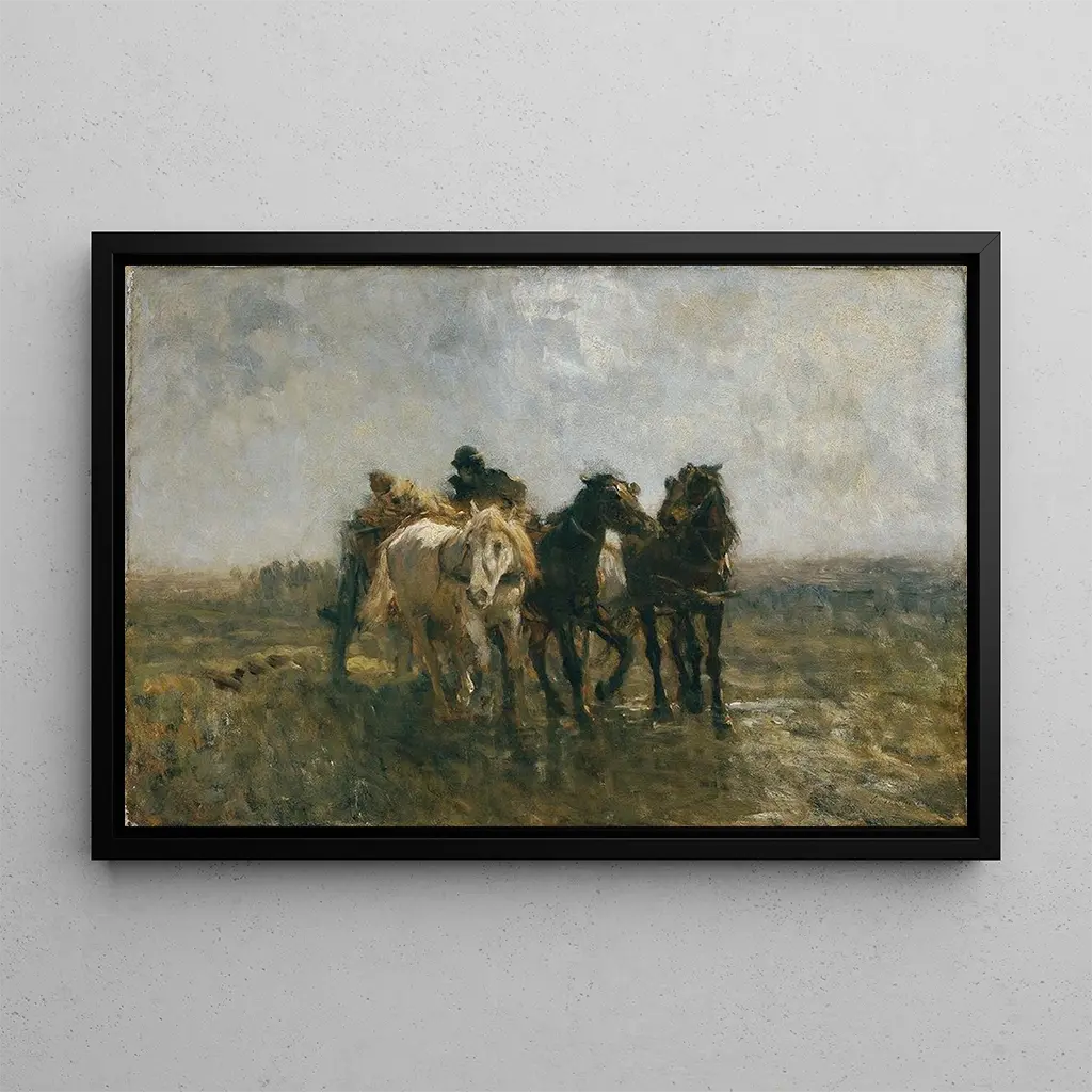 Le tableau Chariot hongrois d'Otto von Thoren évoque un moment de vie rural, où la simplicité et la beauté se rencontrent. La composition est riche en détails, mettant en avant un chariot traditionnel, symbole de la culture hongroise. Les couleurs terreuses et chaudes créent une atmosphère accueillante, tandis que la lumière douce illumine la scène, révélant la texture des matériaux. Ce tableau invite à une contemplation paisible, permettant au spectateur de s'imaginer au cœur de la campagne hongroise, où le temps semble s'arrêter.
