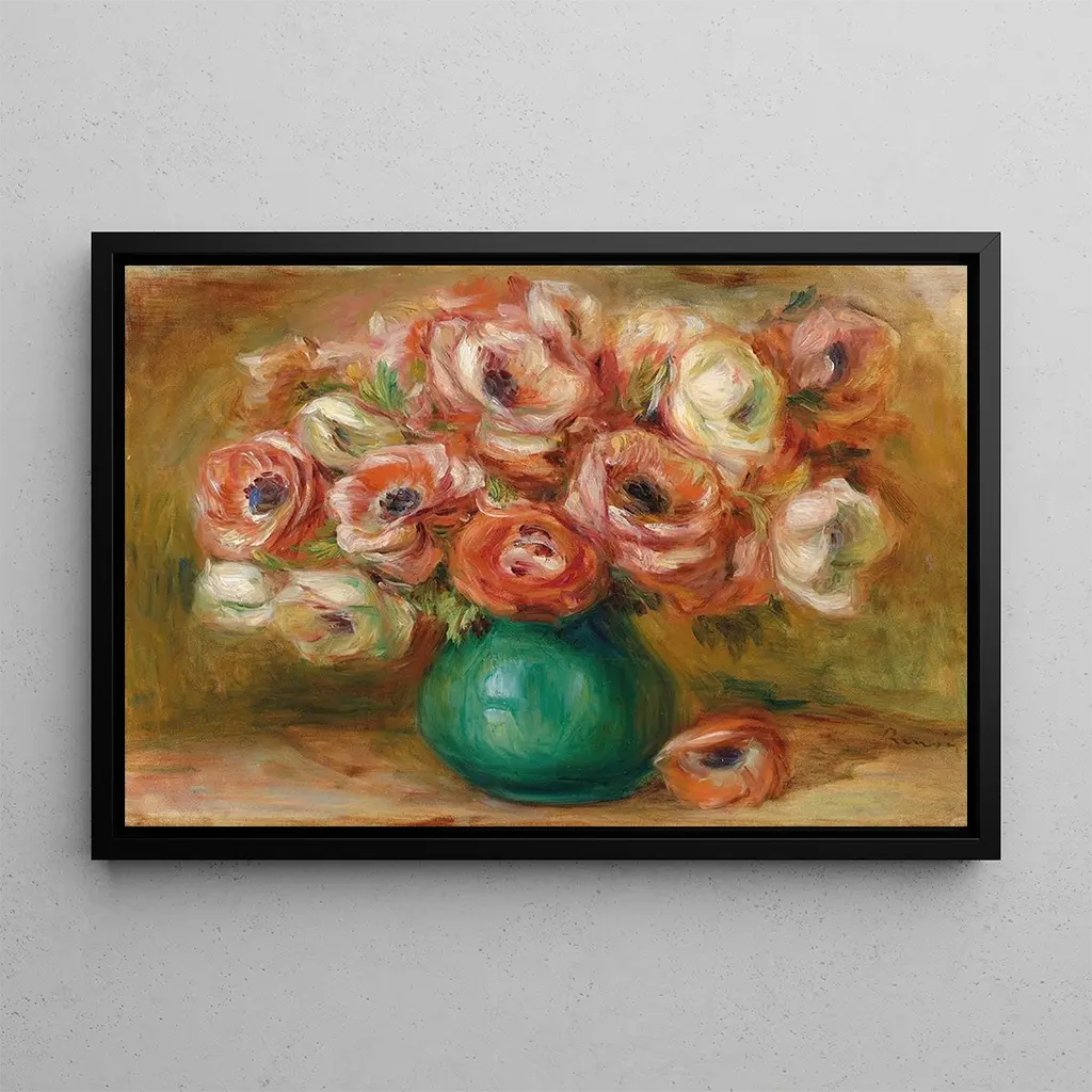 Anemonikukkaruukku: värikäs kukkainen ilotulitus Pierre-Auguste Renoirin "Anemonikukkaruukku" -taulu on todellinen luonnon juhla. Kukat, loistavat ja eloisat, näyttävät tanssivan herkän maljan sisällä, vangiten valoa tavalla, joka herättää iloa ja rauhaa. Pehmeät siveltimenvedot ja runsas paletti, jossa on sävyjä vaaleanpunasta, violetista ja valkoisesta, luovat lämpimän ja kutsuvan tunnelman. Renoir, impressionismin mestari, onnistuu välittämään näiden kukkien hetkellisen kauneuden ja tunteen, kutsuen katsojan uppoutumaan tähän katoavaan kauneuden hetkeen. Pierre-Auguste Renoir: impressionismin ikoninen edustaja Pierre-Auguste Renoir on yksi impressionismin liikkeen ikonisimmista taiteilijoista, joka syntyi 1800-luvun lopulla Ranskassa. Hän syntyi vuonna 1841 ja sai vaikutteita mestareilta kuten Monet ja Degas, mutta kehitti oman tyylinsä, joka on tunnusomainen kirkkaiden värien ja dynaamisten sommitelmien ansiosta. Hänen teoksensa keskittyvät usein arkipäivän elämään ja luonnon kauneuteen, kuten "Anemonikukkaruukku" todistaa. Renoir onnistui vangitsemaan aikansa olemuksen, ja hänen perintönsä elää edelleen hänen maalauksissaan, jotka inspiroivat ja ihastuttavat yhä. Monipuolinen sisustuksellinen taidegrafiikka "Anemonikukkaruukku" -taidegrafiikan reproduktio on erinomainen valinta sisustuksen kaunistamiseen, olipa kyseessä olohuone, toimisto tai makuuhuone. Sen tulostuslaatu ja alkuperäisten värien uskollisuus tekevät siitä keskeisen teoksen, joka kiinnittää huomion ja herättää keskustelua. Tämä taulu, ajattomalla charmillaan, lisää eleganssia ja raikkautta mihin tahansa tilaan. Valitsemalla tämän taidegrafiikan, tuot luonnon kauneuden osaksi kotiasi ja samalla yhteyden taiteelliseen perintöön, joka kuuluu impressionismin suurimpiin mestareihin.