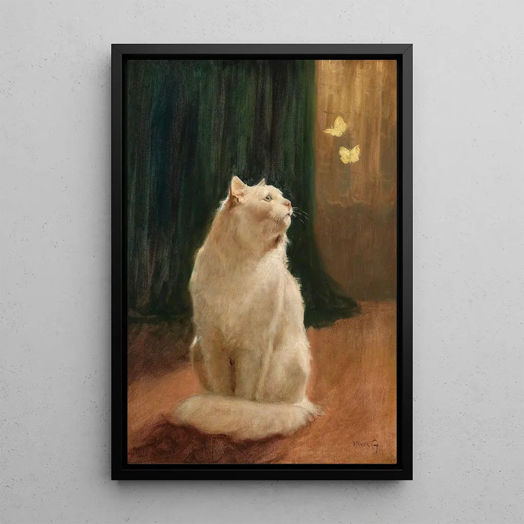 Taidetuloste | Chat blanc et deux papillons citron - Arthur Heyer