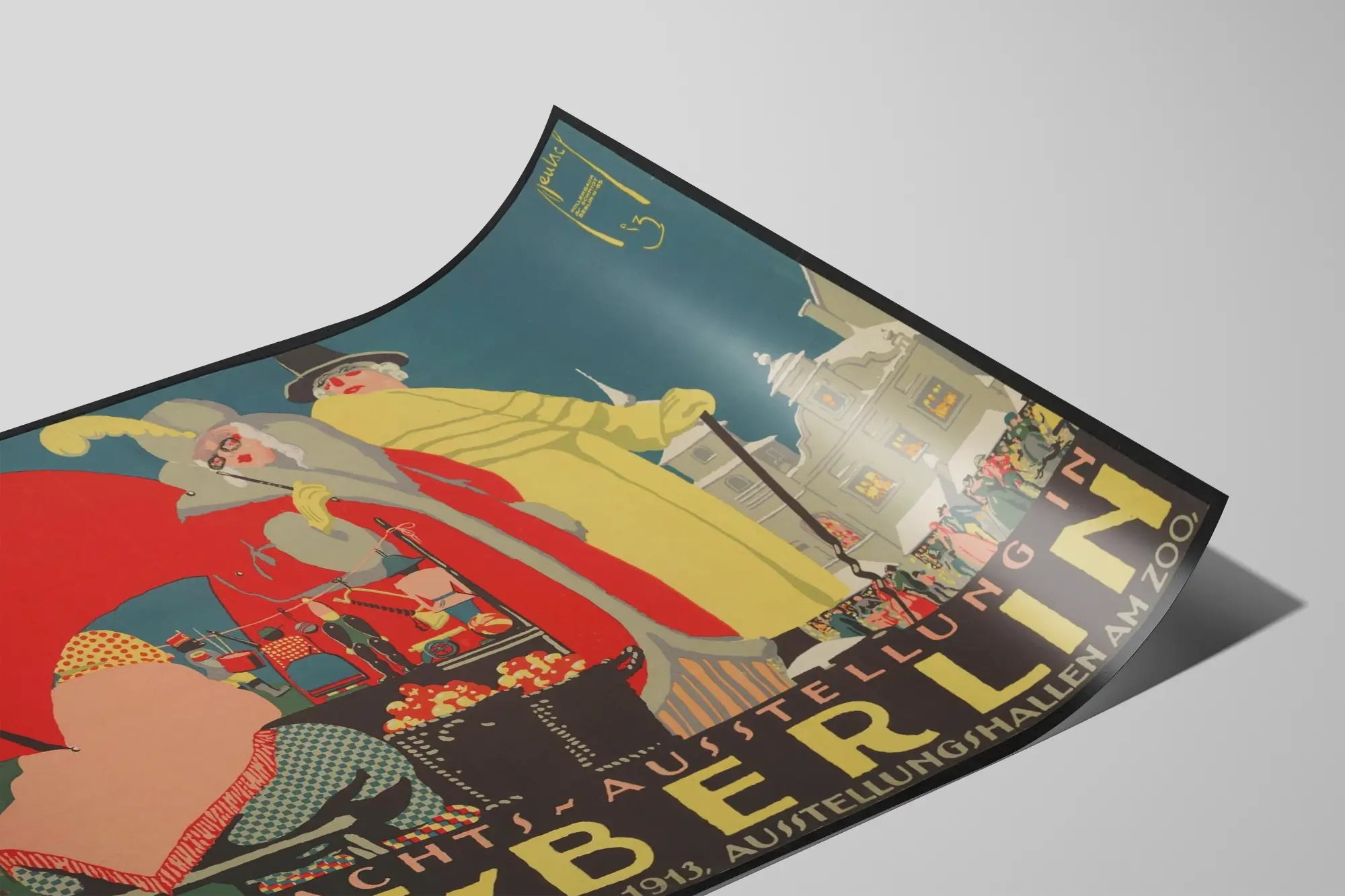 Juliste esittelee vilkkaan kohtauksen, jossa näkyy hyvin pukeutuneita hahmoja, roikkuva lelukaupan kojut ja perinteiset leivonnaiset, ja taustalla vanhojen rakennusten siluetti lisää dokumentaarista syvyyttä tähän teokseen. Tämä juliste on todellinen kunnianosoitus berliiniläiselle juhlaperinteelle ja ilahduttaa aitouden ja omaleimaisuuden ystäviä.