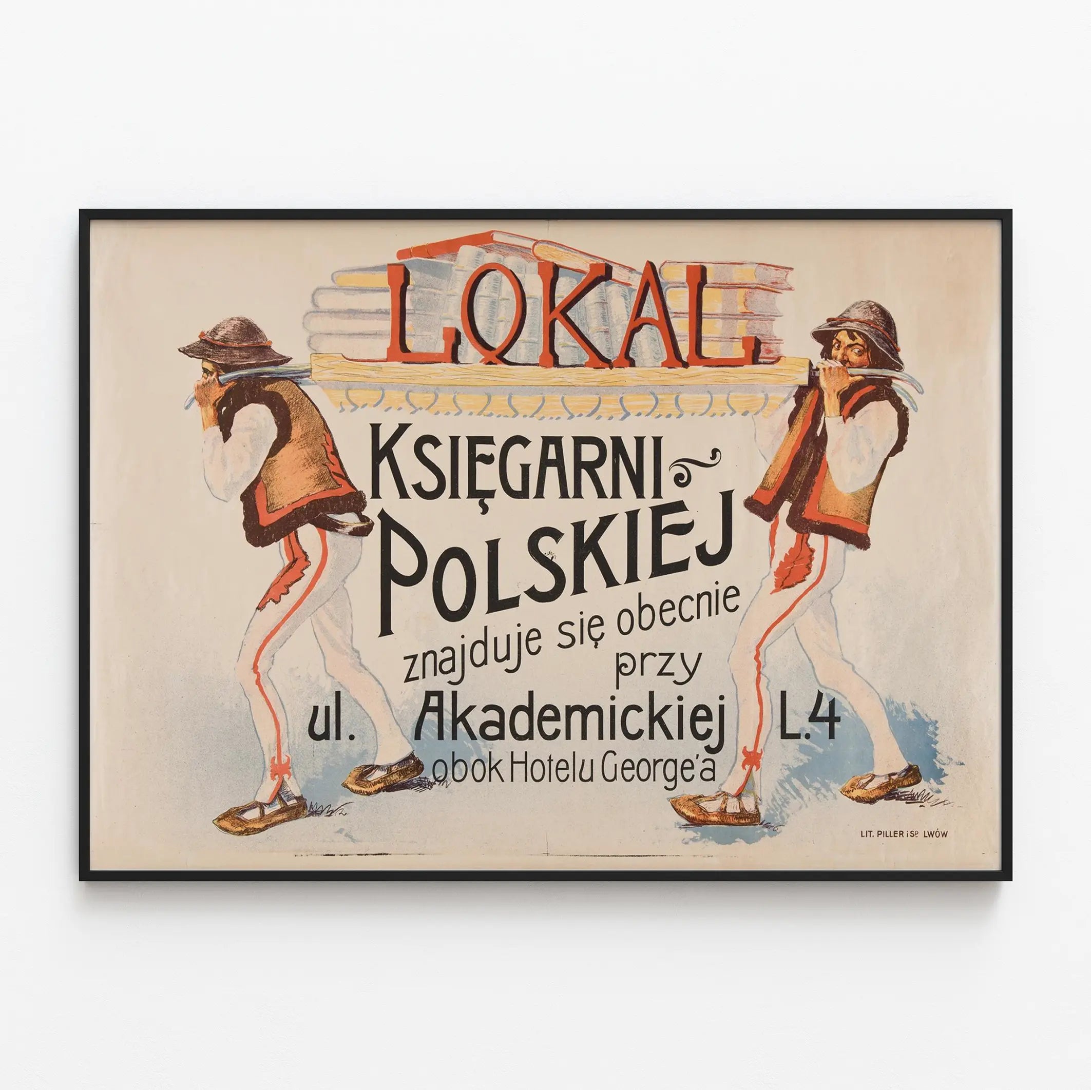 Lisää seinäkoristeluusi aitouden ja historian tuntua tämän vintage- julisteen nimeltä "Lokal Księgarni Polskiej" avulla. Tämä mainosjuliste, jonka on painanut Lit. Piller Lwówissa, esittää taiteellisesti kaksi miestä perinteisissä puolalaisissa vaatteissa, jotka kantavat kirjahyllyä täynnä kirjoja, viitaten lämpimään ja kulttuuriseen puolalaisen kirjaston maailmaan. Puolan kielen teksti kertoo kirjaston sijainnin, joka sijaitsee Akademickian kadulla George-hotellin vieressä, mikä lisää tähän seinäkoristeeseen aitouden ja historian tuntua. Tämä juliste on täydellinen vintage-harrastajille, puolalaisen kulttuurin ystäville tai niille, jotka etsivät retro-henkistä julistetta korostamaan klassisen tai eklektisen tyylisen sisustuksen viehätystä. Pehmeiden värien ja huolellisesti toteutettujen kuvien ansiosta tämä juliste sopii harmonisesti erilaisiin tiloihin: kirjastoihin, olohuoneisiin, toimistoihin tai lukupaikkoihin. Se voi myös täydentää vanhojen julisteiden tai graafisten teosten kokoelmaa, jotka liittyvät kirja- ja tiedemaailmaan. Tämä alkuperäinen juliste, joka yhdistää typografisen viestin ja perinteisen piirroksen, on merkittävä esimerkki aikaisempien kirjastojen visuaalisesta viestinnästä. Ripustettuna seinälle tämä vintage-juliste kertoo tarinan ja kutsuu kirjalliseen löytöretkeen, samalla tuoden lämpimän ja kulttuurisen tunnelman tilaanne. Valitsemalla tämän seinäkoristeen teet siitä ainutlaatuisen osan sisustustasi, joka korostaa paitsi kirjaharrastustasi myös aikakauden graafista ilmettä ja vanhaa mainosgraafista taidetta.