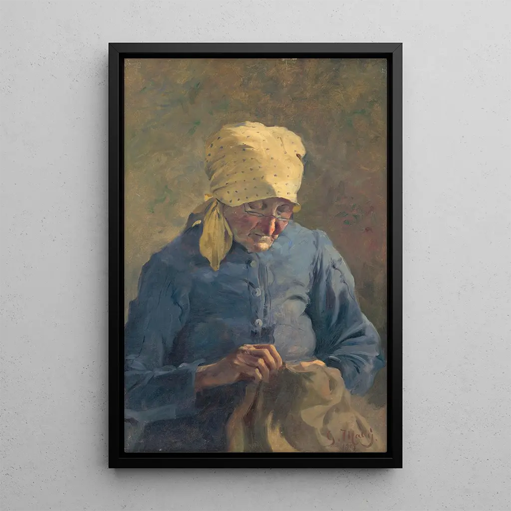 Taidetuloste | Vanha nainen ompelemassa - Gustav Mahler