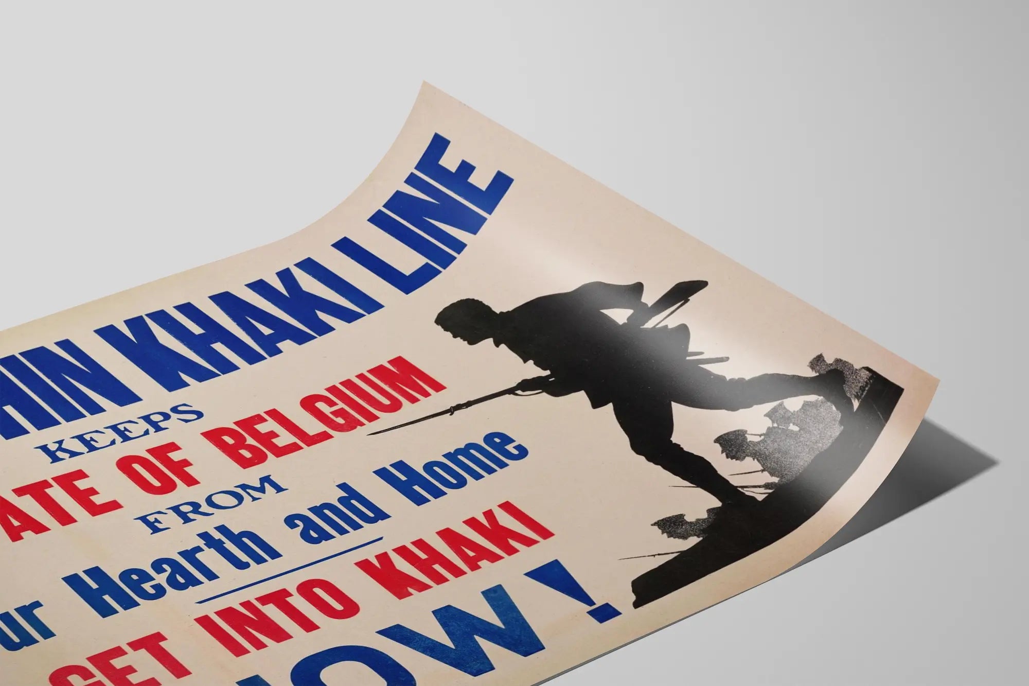 " The Thin Khaki Line" -juliste muistuttaa sitoutumisen ja velvollisuuden tärkeydestä ikonisen graafisen ilmeen kautta. Sitä voi käyttää myös opetustarkoituksiin tai muistoseinän keskipisteenä. Sen voimakas viesti ja dynaaminen sotilassiluetti luovat vahvan visuaalisen vaikutelman, mikä tekee tästä julisteesta välttämättömän seinäkoristeen vintage- tai sotilastyyliin sisustetuissa tiloissa.