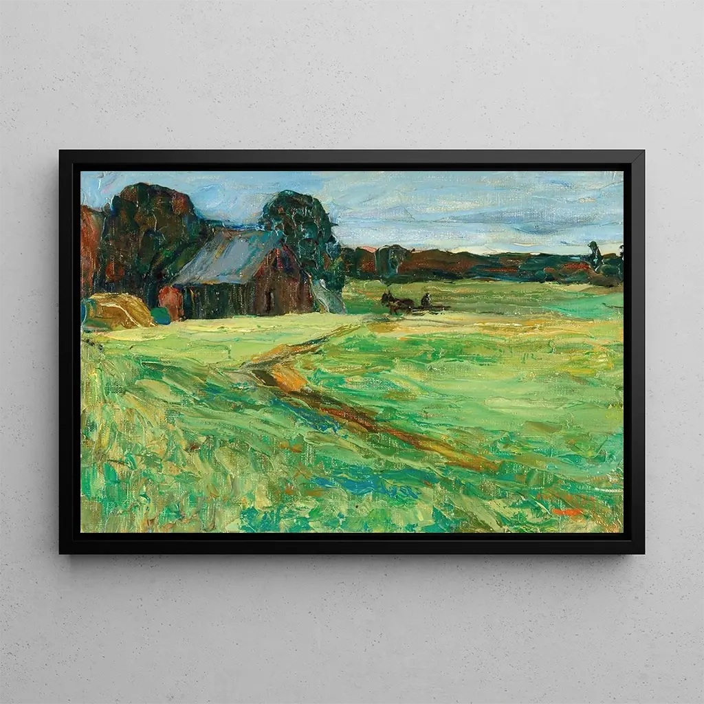 Vasilevsko Grange avec poney : une harmonie entre l'homme et la nature Dans "Vasilevsko Grange avec poney", Wassily Kandinsky nous plonge dans un univers où la couleur et la forme s'entrelacent pour créer une atmosphère vibrante. Les teintes chaudes et terreuses évoquent une sérénité bucolique, tandis que les formes géométriques et organiques se mêlent pour donner vie à la scène. Le poney, symbole de liberté et de connexion à la terre, se dresse fièrement au cœur de cette composition. L'œuvre invite à une contemplation profonde, où chaque coup de pinceau semble raconter une histoire, une danse entre l'homme et la nature, révélant la beauté des moments simples. Wassily Kandinsky : pionnier de l'abstraction et de l'expressionnisme Wassily Kandinsky, né en 1866 en Russie, est souvent considéré comme l'un des fondateurs de l'art abstrait. Influencé par le mouvement expressionniste et les théories de la couleur, il a cherché à exprimer des émotions à travers des formes et des couleurs. Son œuvre évolue au fil des ans, passant de représentations figuratives à des compositions totalement abstraites. Kandinsky a également été un théoricien de l'art, écrivant des ouvrages influents sur la couleur et la forme. "Vasilevsko Grange avec poney" témoigne de son intérêt pour la nature et la spiritualité, des thèmes récurrents dans son travail, qui ont marqué l'histoire de l'art moderne. Une acquisition décorative aux multiples atouts La reproduction de "Vasilevsko Grange avec poney" est une pièce décorative qui saura enrichir votre intérieur, que ce soit dans un salon, un bureau ou une chambre. Sa palette de couleurs chaleureuses et son ambiance apaisante en font un choix idéal pour créer une atmosphère accueillante. La qualité de la reproduction garantit une fidélité remarquable à l'œuvre originale, permettant de profiter de l'attrait esthétique de Kandinsky sans compromettre le style de votre décoration. En ajoutant ce tableau à votre collection, vous invitez non seulement l'art dans votre quotidien, mais aussi une réflexion sur la relation entre l'homme et la nature.