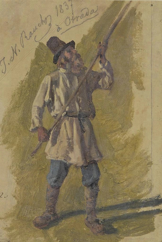 Johann Nepomuk Rauch, actif au XIXe siècle, est un artiste dont le travail se concentre sur la représentation fidèle de la vie quotidienne et des personnages qui l'habitent. Influencé par les courants réalistes de son époque, il a su capturer la dignité et la force des travailleurs, comme en témoigne cette œuvre. Sa capacité à transmettre des émotions à travers ses sujets fait de lui une figure importante de l'art européen. Rauch a ainsi contribué à mettre en lumière la vie des classes laborieuses, offrant une perspective précieuse sur la société de son temps.
