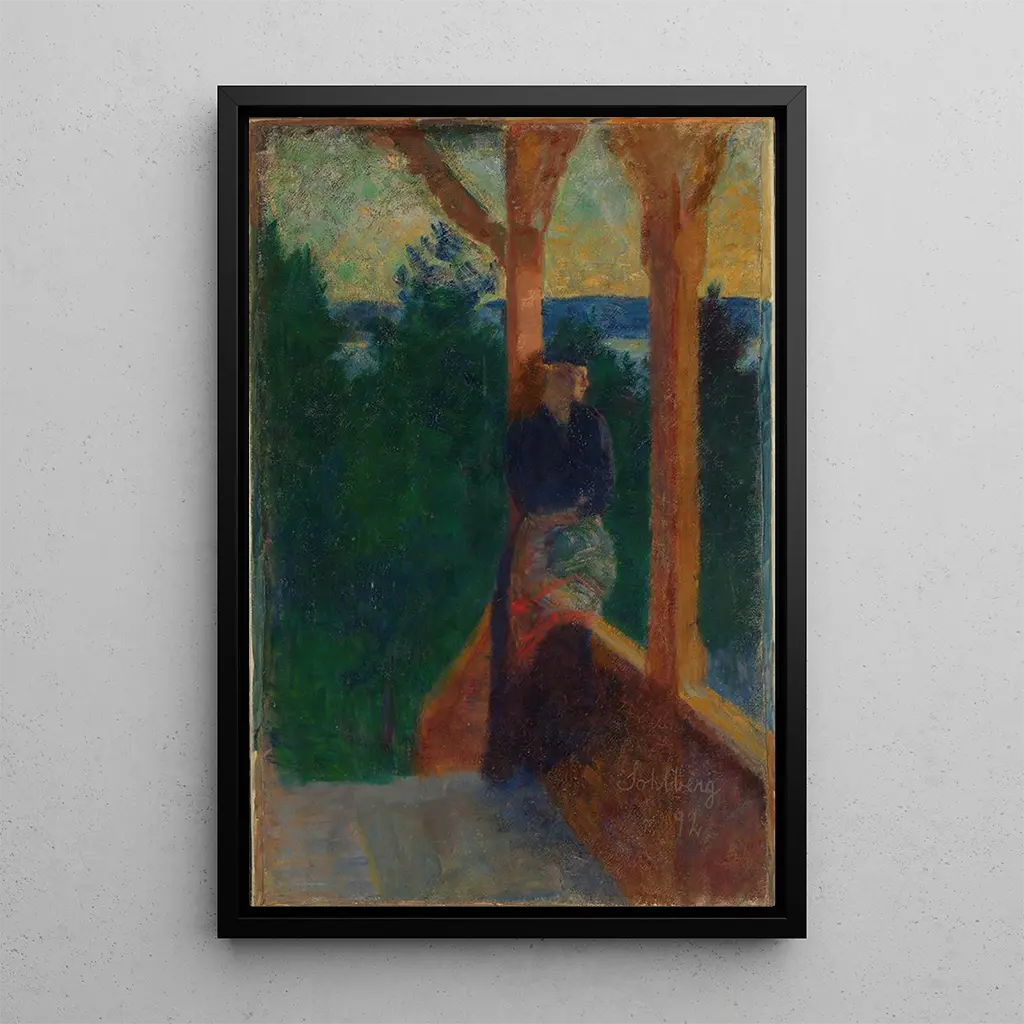 Harald Sohlberg, peintre norvégien du début du XXe siècle, est souvent associé au mouvement impressionniste et à la peinture de paysage. Sa carrière est marquée par une exploration des effets de la lumière sur la nature, ce qui lui a valu une reconnaissance tant en Norvège qu'à l'international. Influencé par les paysages scandinaves, Sohlberg a su capturer l'essence de la nature à travers des compositions vibrantes et lumineuses. "Sur la véranda" témoigne de son talent à transformer des scènes ordinaires en moments d'une beauté exceptionnelle.