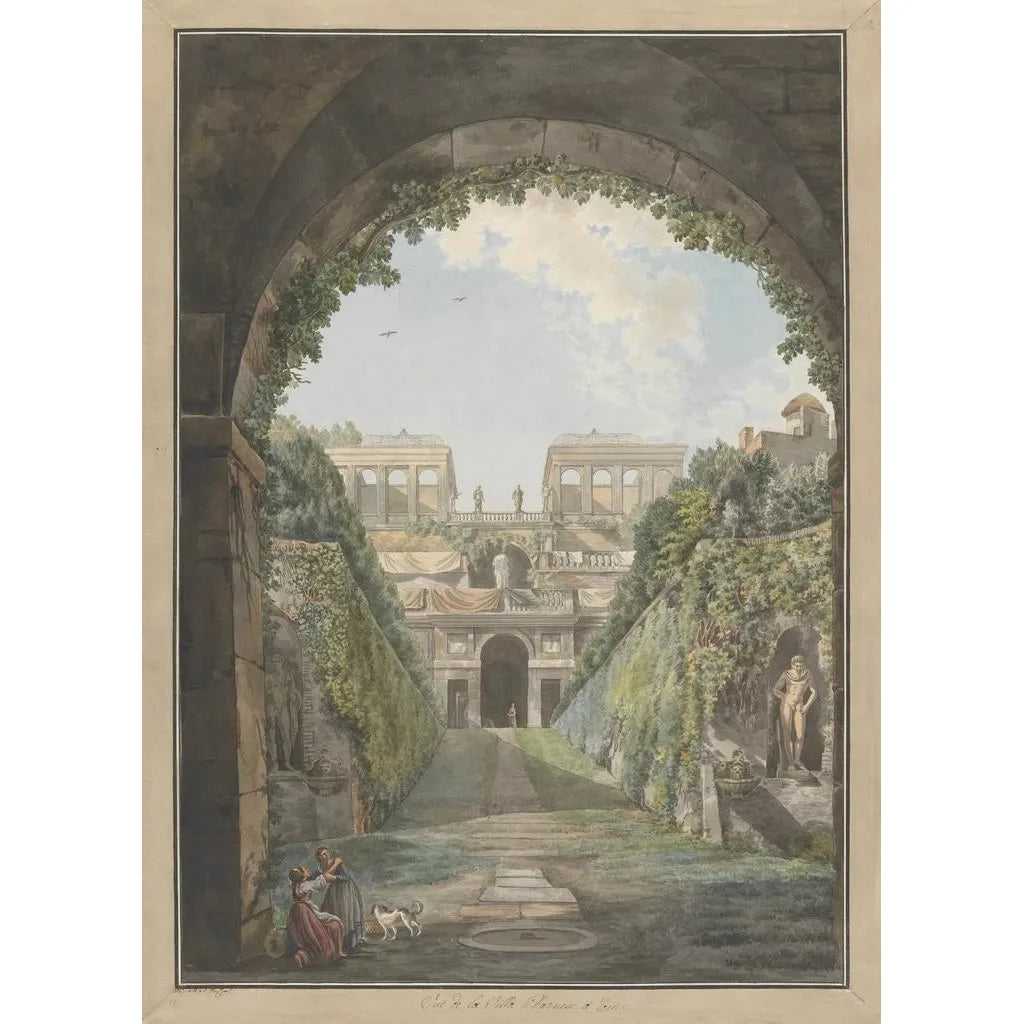 Villa Farnèse : taidegrafiikan mestariteos arkkitehtuurin ja luonnon harmoniasta "Villa Farnèse", Abraham Louis Rodolphe Ducrosin merkittävä teos, on kiehtova esitys arkkitehtuurin ja maiseman yhteensovittamisesta. Tämä taidegrafiikka kuvaa majesteettista villaa, jota ympäröivät rehevät puutarhat, joissa luonnollinen valo korostaa arkkitehtonisia yksityiskohtia. Hellävaraiset värit ja vihreän sävyt luovat rauhallisen tunnelman, joka kutsuu mietiskelyyn. Tasapainoinen koostumus rakennetun rakenteen ja ympäröivän luonnon välillä heijastaa Ducrosin taiteellista näkemystä, joka onnistuu vangitsemaan tämän lumoavan paikan olemuksen. Abraham Louis Rodolphe Ducros : neoklassismin sydämessä oleva taiteilija Ducros, 1700-luvun maalari ja akvarellisti, tunnetaan kyvystään tulkita italialaisten maisemien ja historiallisten monumenttien kauneutta. Hänen tyylinsä, joka on merkitty neoklassismin vaikutteisiin, heijastaa etsintää harmoniasta ja täydellisyydestä. "Villa Farnèse" kuuluu tähän perinteeseen, osoittaen hänen taitonsa ikuistaa ikonisia paikkoja samalla kun hän kunnioittaa italialaista kulttuuria. Hänen matkansa kautta Italiaan on antanut hänelle mahdollisuuden imeä erilaisia vaikutteita, tehden hänestä etuoikeutetun todistajan aikakaudestaan. Monipuolinen sisustuksellinen taidegrafiikka "Villa Farnèse" -taidegrafiikan kopio on erinomainen valinta sisustuksen kaunistamiseen, olipa kyseessä olohuone, toimisto tai makuuhuone. Sen tulostuslaatu mahdollistaa alkuperäisen teoksen kauneuden kunnioittamisen, samalla tuoden eleganssia sisustukseesi. Tämä taidegrafiikka, sen esteettisen vetovoiman ansiosta, kutsuu unelmointiin ja pakomatkaan, rikastuttaen asuintilaasi historiasta ja kulttuurista kertovalla sävyllä. Valitsemalla tämän taidegrafiikan teoksen teet valinnan koriste-esineeksi, joka kykenee vangitsemaan ja inspiroimaan vieraitasi.