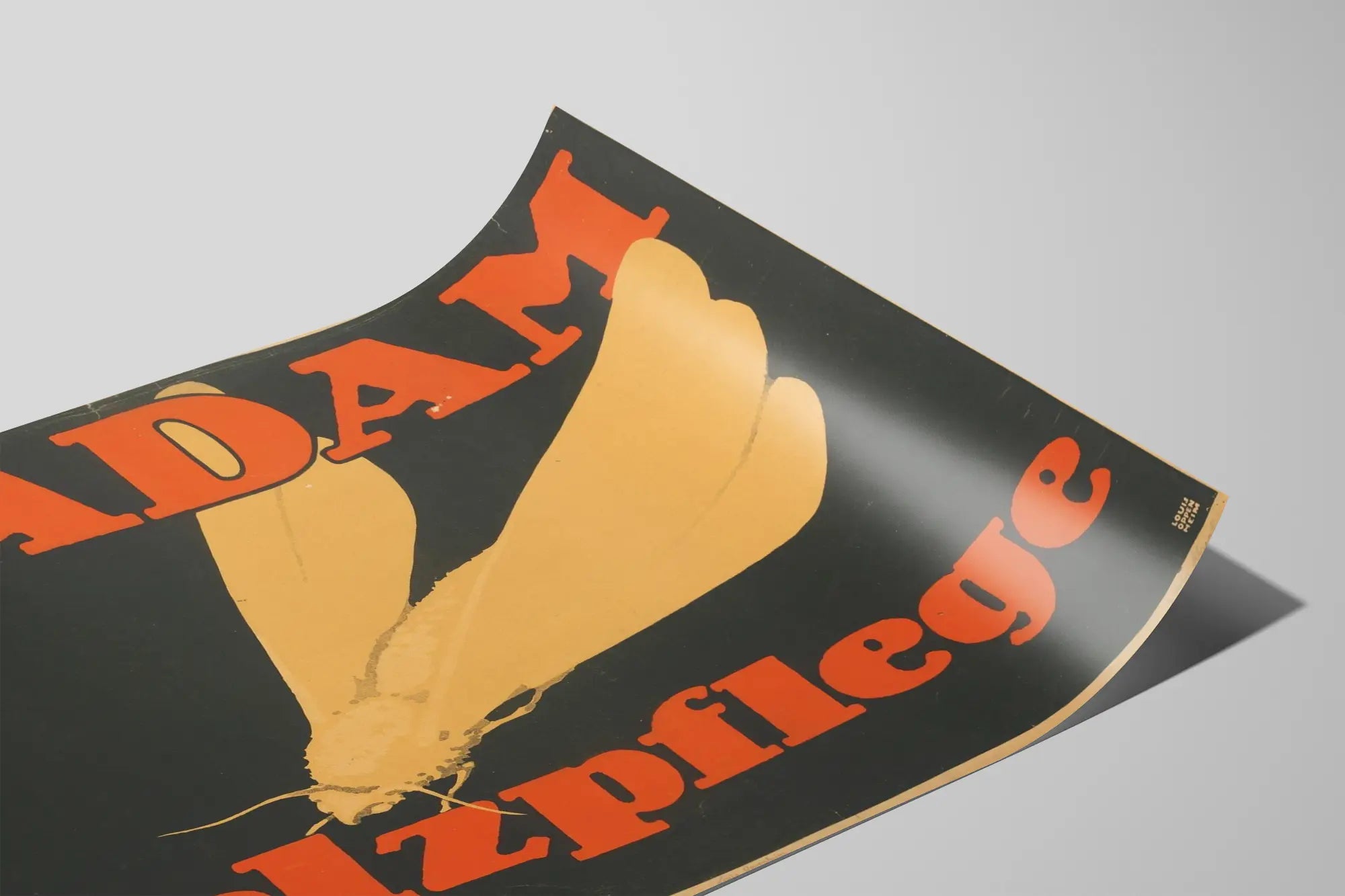 Tämä vintage-seinäkolla koristelu esittää voimakkaasti graafisesti tyyliteltyä perhosen tai toukan kuvaa, vaaleankeltaisena tumman taustan päällä. Punaisilla isoilla kirjaimilla kirjoitettu teksti, "S-Adam" yläosassa ja "Pelzpflege" alhaalla, kiinnittää heti huomion kontrastillaan tumman taustan kanssa, viitaten vanhaan ja aitoon tyyliin. Tämä juliste on ihanteellinen retro-grafiikan ystäville tai teollisen tyylin seinäkoristeisiin, tuoden tilaan sekä eleganssia että omaleimaisuutta. Sen minimalistinen koostumus ja rohkeat värit tekevät tästä julisteesta todellisen sisustuselementin, sopien hyvin olohuoneeseen, toimistoon tai jopa kaupalliseen tilaan, joka kaipaa vahvaa visuaalista elementtiä. Luonnonmukainen kuvio, jossa keskitytään levittäviin siipiin oleviin perhoseihin, lisää hienostuneisuutta ja keveyden symbolia, luoden kontrastia vaikuttavan typografian kanssa. Tämä vintage-juliste sopii myös osaksi vanhojen julisteiden tai mainoskuvitusten kokoelmaa, rikastuttaen huolellista seinäkoristetta, joka on täynnä visuaalista historiaa. Täydellinen kaikille, jotka haluavat koristella seinänsä graafisella, vintage-tyylisellä ja persoonallisella teoksella.