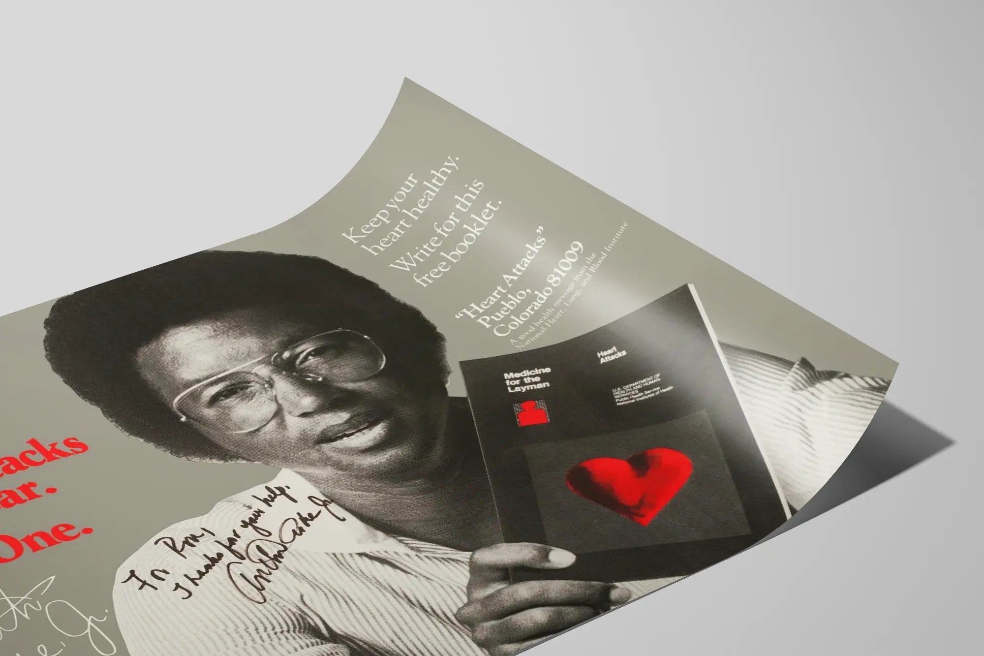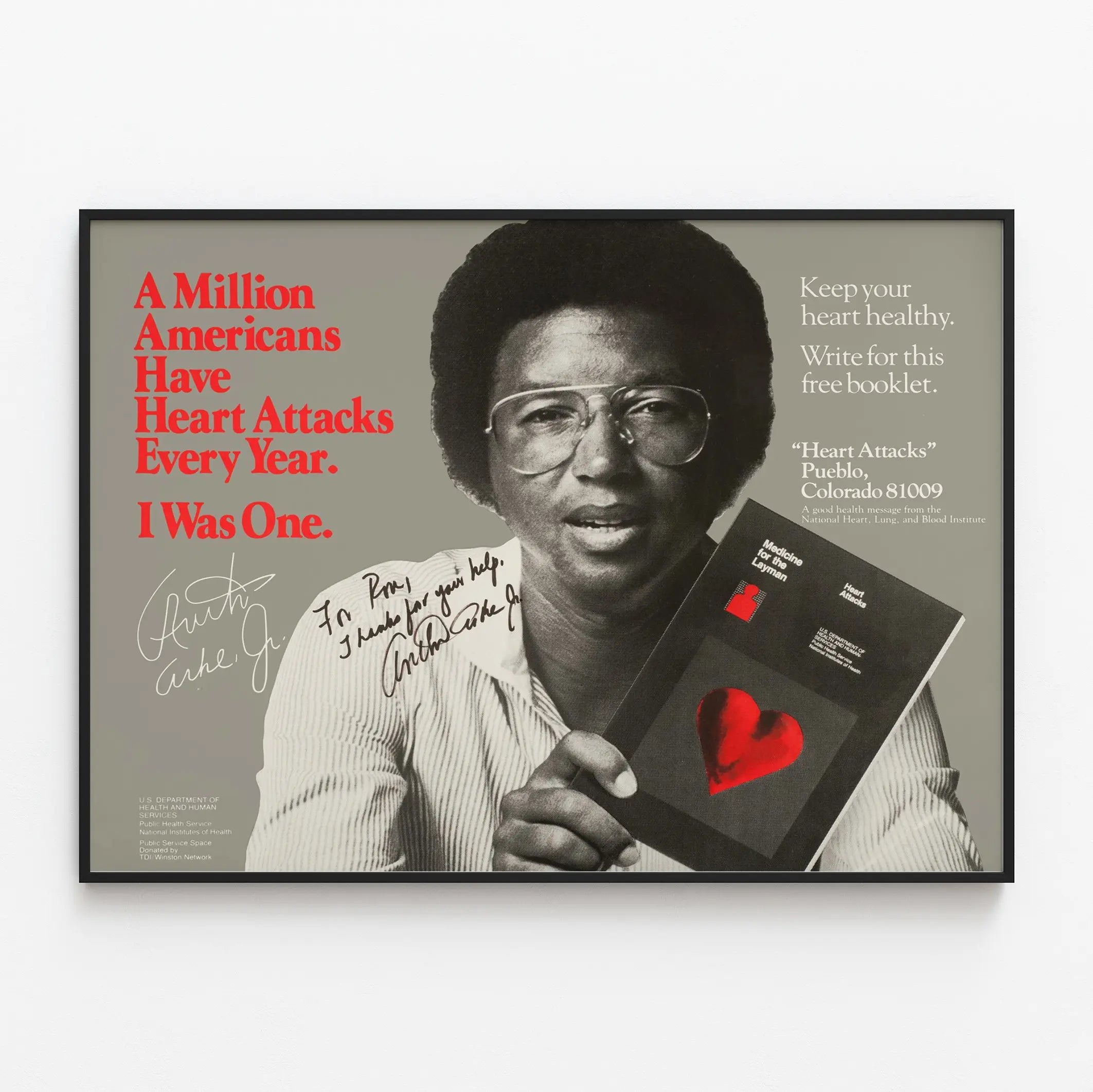 Tämä vintage juliste sydänsairauksien tietoisuuden lisäämiseksi kiinnittää huomiota tärkeään kansanterveysviestiin: miljoona amerikkalaista kärsii vuosittain sydänkohtauksesta. Kuvassa on mustavalkoinen muotokuva silmälasipäisestä miehestä, joka pitää käsissään vihkoa nimeltä « Medicine for the Layman », joka on omistettu sydänkohtauksille. Kirkkaan punainen ja vaikuttava teksti « A Million Americans Have Heart Attacks Every Year. I Was One. » korostaa ongelman vakavuutta ja sisältää vahvan henkilökohtaisen todistuksen.