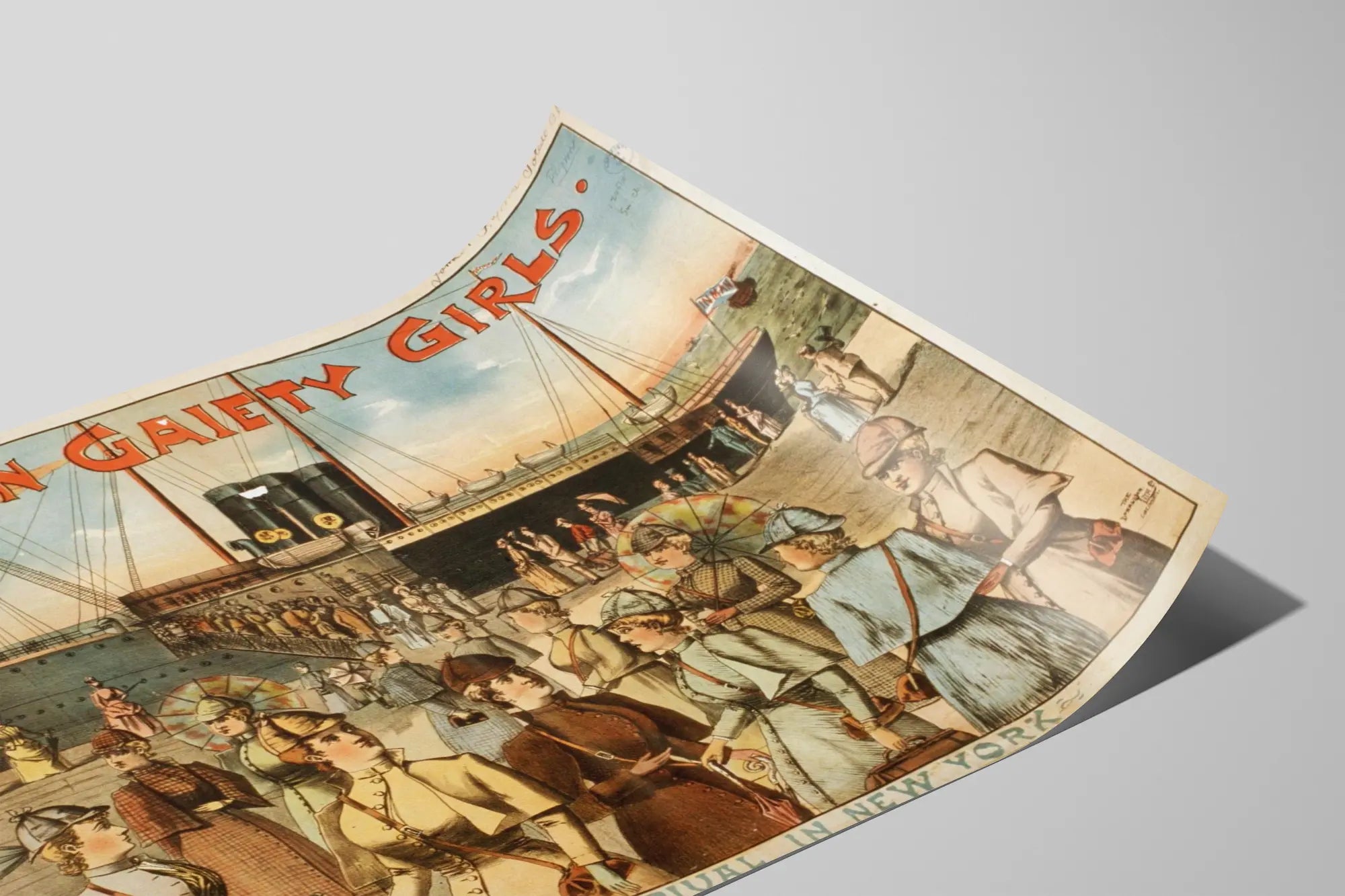 Vintagejuliste The London Gaiety Girls - saapuminen New Yorkiin