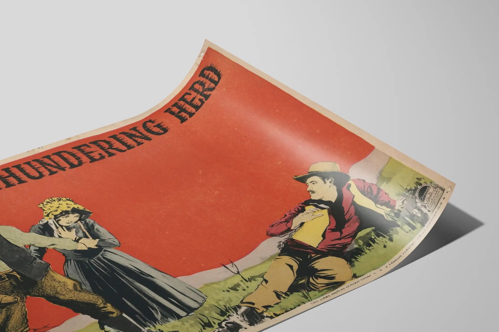 Tutustu tähän vintage-plakaattiin nimeltä "The Thundering Herd", joka on saanut innoituksensa Zane Greyn teoksesta, yhdysvaltalaisen lännen klassikosta. Tämä seinäkoriste kuvaa tyypillistä Lännen maisemaa, jossa on kolme hahmoa avoimessa maisemassa ja taustalla voimakas punainen taivas. Lämminten sävyjen ja hillitysti pukeutuneiden hahmojen välinen voimakas kontrasti luo vaikuttavan visuaalisen vaikutelman. Tämä juliste on ihanteellinen lännen tai vintage-teemaisen seinäkoristeen ystäville, tuoden tilaan dramaattisen ja nostalgisen tunnelman. Helposti kehystettävä, se sopii hyvin olohuoneeseen, toimistoon tai vapaa-ajan tilaan, lisäten ripauksen omaperäisyyttä ja klassisen elokuvan historiaa. Julisteen graafinen tyyli ja yläosan typografiset kirjaimet korostavat tämän kappaleen retro- ja aitouden tuntua. Täydellinen vanhojen julisteiden ja inspiroivien sisustusten ystäville, tämä "The Thundering Herd" -juliste on tyylikäs valinta ainutlaatuisen ja vaikuttavan seinäkoristeen luomiseen.