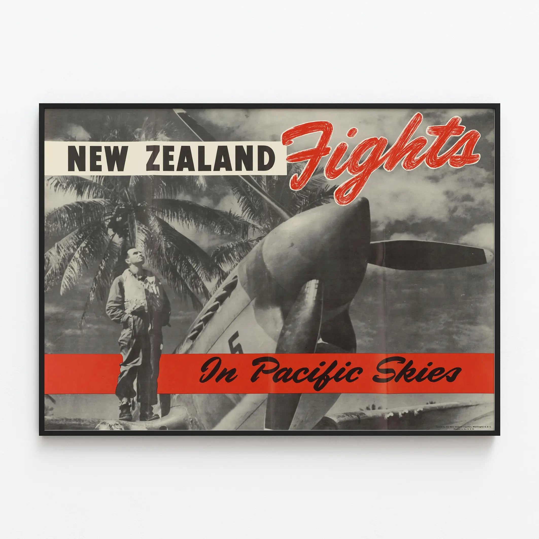 Vintage Juliste Uudesta-Seelannista Taisteluissa Tyynenmeren taivaan yllä