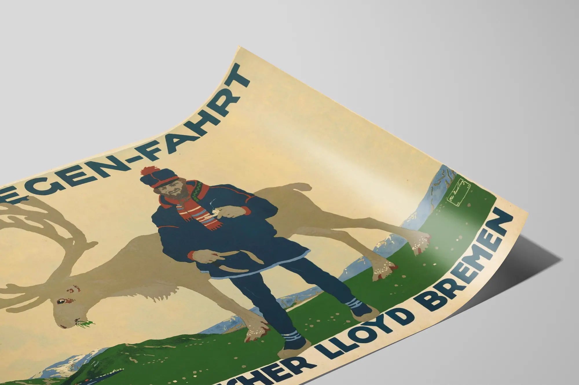 Vintage juliste Norja-matka Norddeutscher Lloyd Bremen