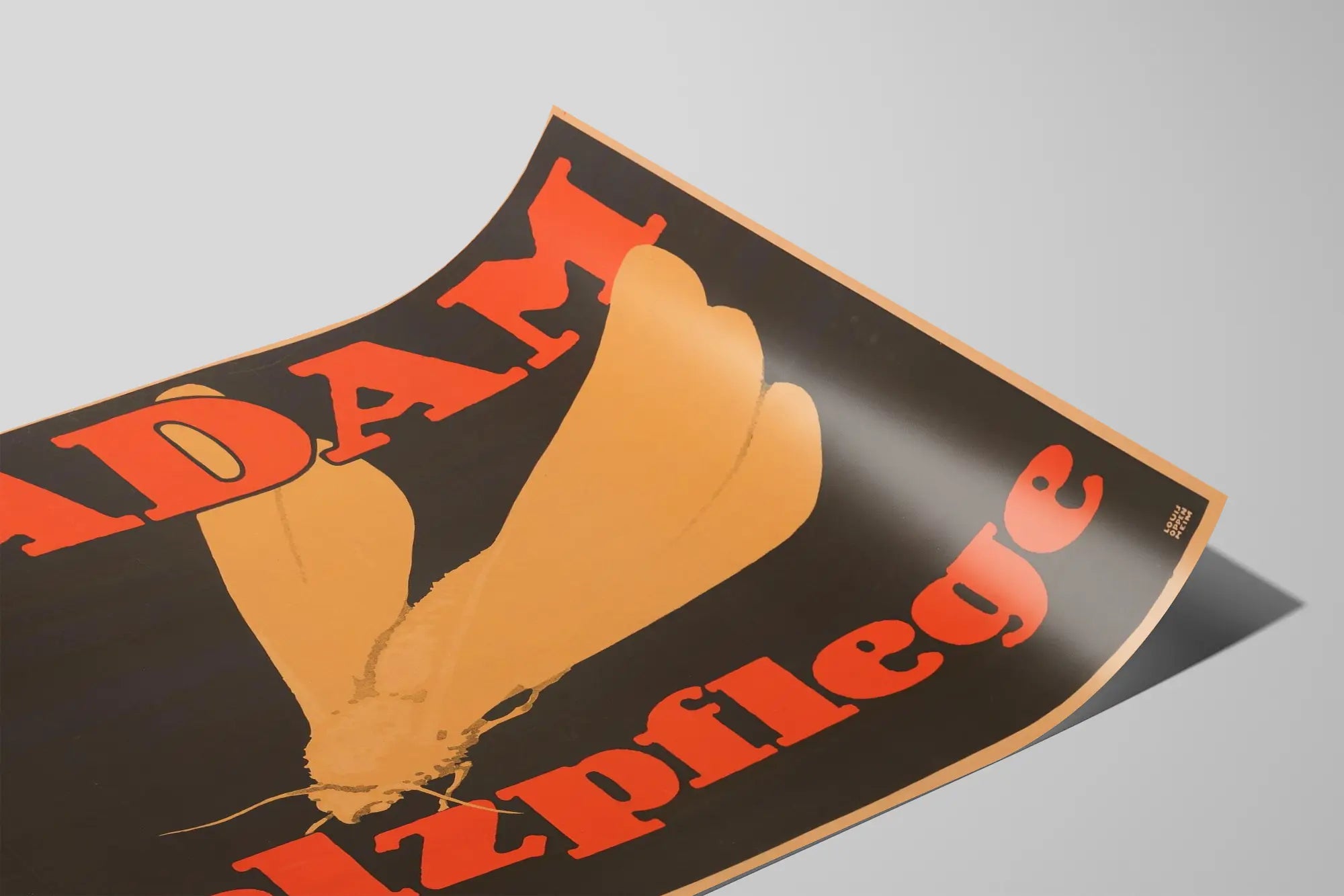 Tuothdi retro ja taiteellista tunnelmaa tilaanne tällä vintage- julisteella S.ADAM Pelzpflege. Tämä graafinen tyyliä edustava juliste esittelee suuren minimalistisen kuvan hyönteisestä, jonka siivet ovat levällään, sävyiltään okran ja beigen sävyinen, ja se on asetettu syvän mustan taustan päälle, mikä luo vaikuttavan kontrastin. Kirkkaan punaiset isokirjaimet „S.ADAM“ ja „Pelzpflege“ kehystävät harmonisesti kuvaa, antaen tälle seinäkoristeelle vahvan identiteetin. Ihanteellinen vintage-suunnittelun ystäville tai yksinkertaisia mutta vaikuttavia sommitelmia arvostaville, tämä juliste sopii täydellisesti teolliseen, moderniin tai eklektiseen sisustukseen, koristamaan seinää omaperäisyydellä ja luonteella. Selkeä graafinen tyyli ja rajoitetut värit tekevät siitä koriste-elementin, joka kiinnittää huomion ilman, että se ylikuormittaa huonetta. Olipa kyseessä olohuone, toimisto tai eteinen, tämä vintage-seinäkoriste luo lämpimän ja kulttuurisen tunnelman. Paksulle paperille tulostettuna se takaa kestävyyden ajan myötä, mahdollistaen seinän kaunistamisen monien vuosien ajan. Tämä juliste on myös erinomainen valinta vanhojen julisteiden tai graafisen suunnittelun kokoelmiin, rikastuttaen sisustustasi ainutlaatuisella kappaleella, jossa on vahva tyyli ja vaikuttava typografia. Anna seinillesi visuaalinen sielu tällä S.ADAM Pelzpflege -julisteella, todellinen klassikko mainonnan maailmasta, joka sopii autenttiseen ja tyylikkääseen seinäkoristukseen.