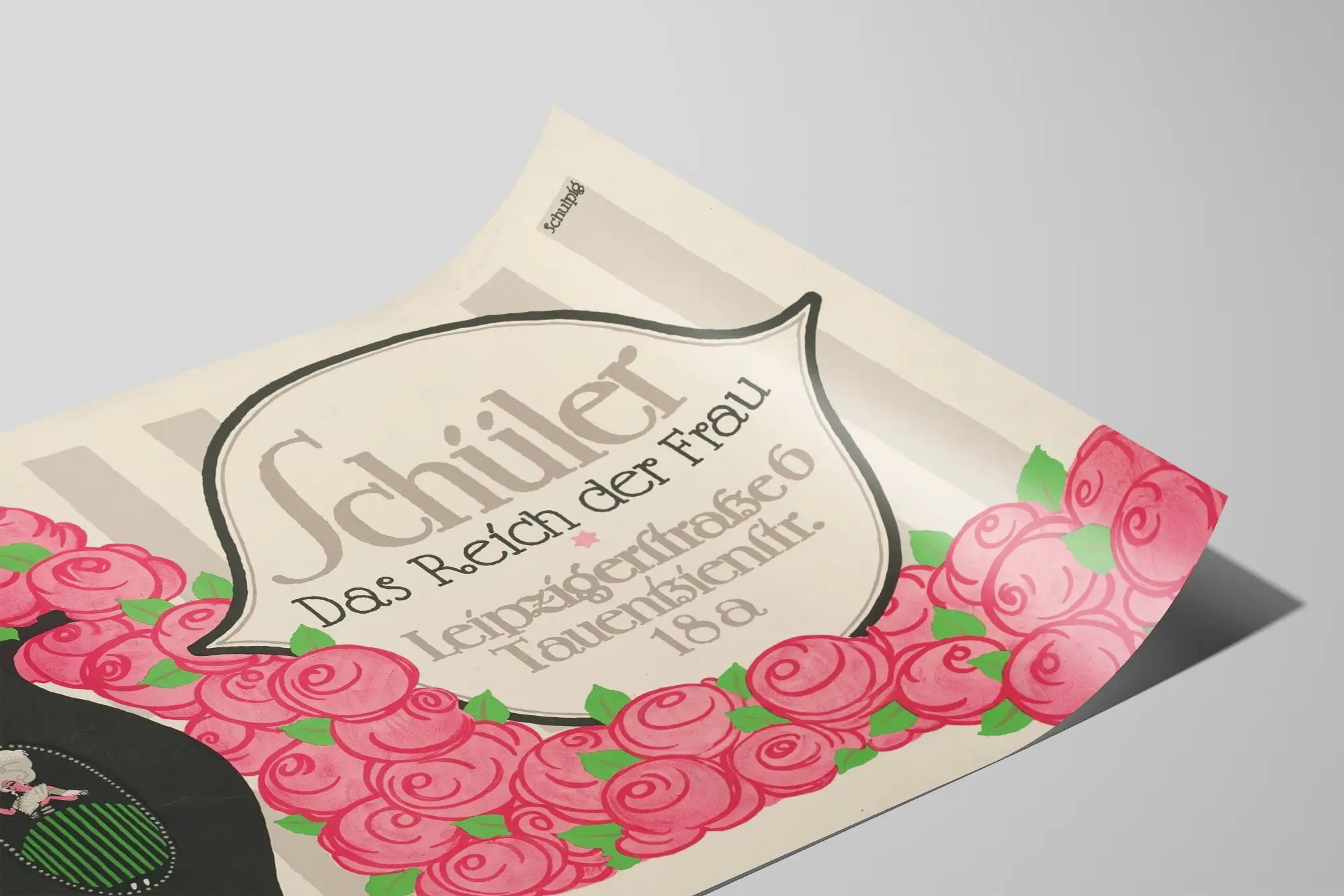 Vintage Juliste Schuler Das Reich der Frau - Seinän koristelu kukkainen