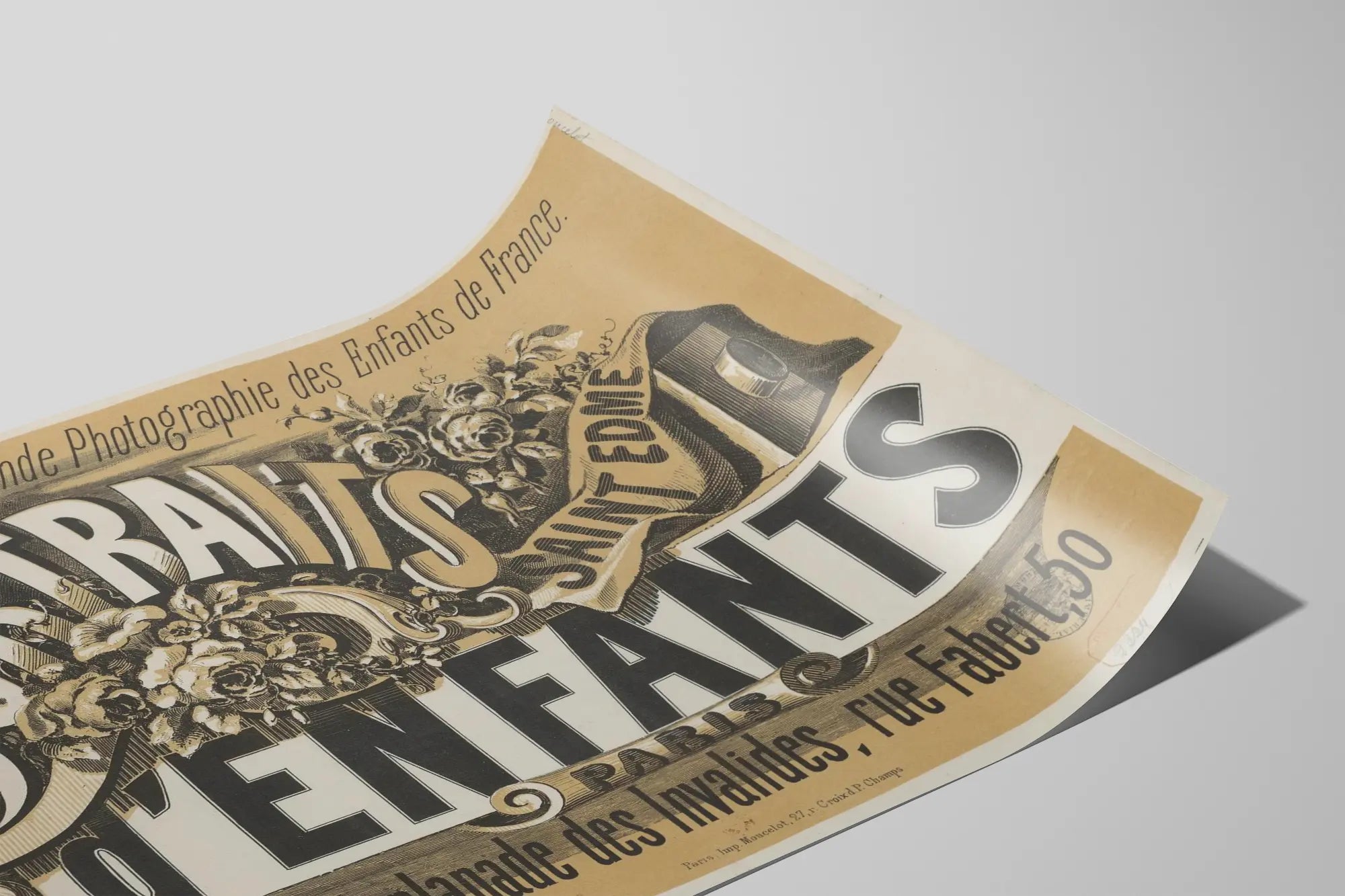 Tämä vintage juliste nimeltä "France lasten muotokuvat" on ainutlaatuinen seinäkoriste, joka tuo esiin vanhan valokuvataiteen eleganssin hienostuneen typografian ja herkkien kukkakuvioiden kautta. Täydellinen tuomaan ripauksen retroa sisätiloihisi, se korostaa lasten muotokuvien viehätystä ja viattomuutta, mikä on ollut merkittävä osa valokuvahistoriaa. Tämän graafisen tyylin, jossa käytetään mustaa, beigeä ja varjostuksia, seinäkoriste toimii erinomaisesti julisteena tai postimerkkinä olohuoneessa, lastenhuoneessa tai luovassa tilassa. Tekstissä mainitaan historiallinen pariisilainen osoite, mikä lisää teoksen aitouden ja nostalgian tuntua. Tämä koriste-esine on suunnattu kaikille, jotka haluavat rikastuttaa sisustustaan vanhan ajan charmilla, kunnianosoituksena perinteiselle graafiselle ja valokuvataiteelle. Ihanteellinen vintage-seinäkoristeiden ystäville, tämä retro-tyylinen juliste luo lämpimän tunnelman yhdistäen historian ja hienostuneen estetiikan. Sen mitat ja huolellisesti suunniteltu muotoilu tekevät tästä julisteesta houkuttelevan osan seinäkompositiota, täydellisen tilan persoonallisuuden ja eleganssin lisäämiseen.