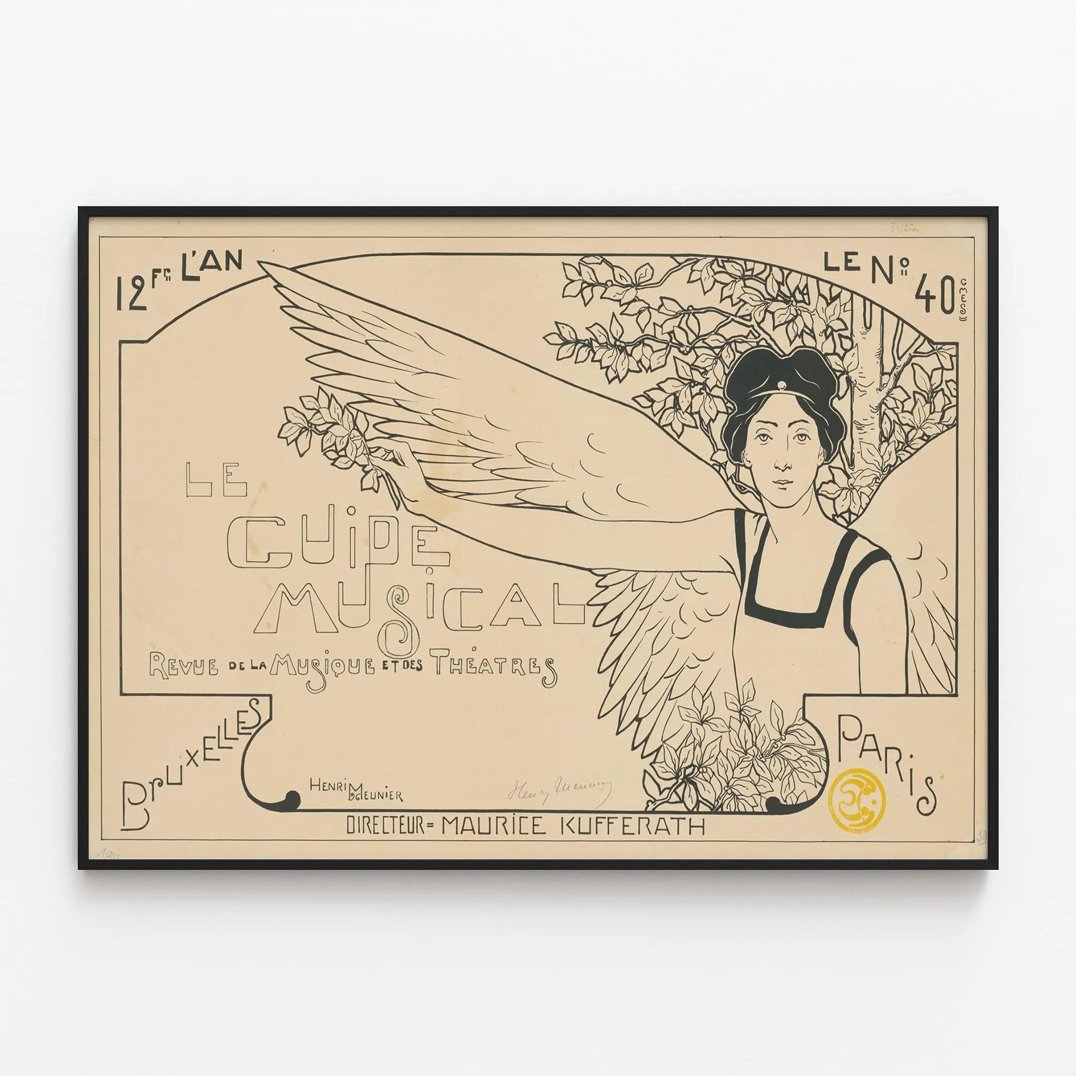 Tämä juliste on täydellinen esitys 1900-luvun alun musiikki- ja teatterilehtien graafisesta ja taiteellisesta tyylistä. Sen typografia on alkuperäinen ja tyylitelty, ja kirjaimet on piirretty korostaen teoksen taiteellista ja kulttuurista luonnetta. Mainittu kuuluvan 12. vuosikertaan ja numerolla 40, se heijastaa "Musiikkilukemiston" kulttuurista merkitystä taidepiireissä Brysselissä ja Pariisissa.