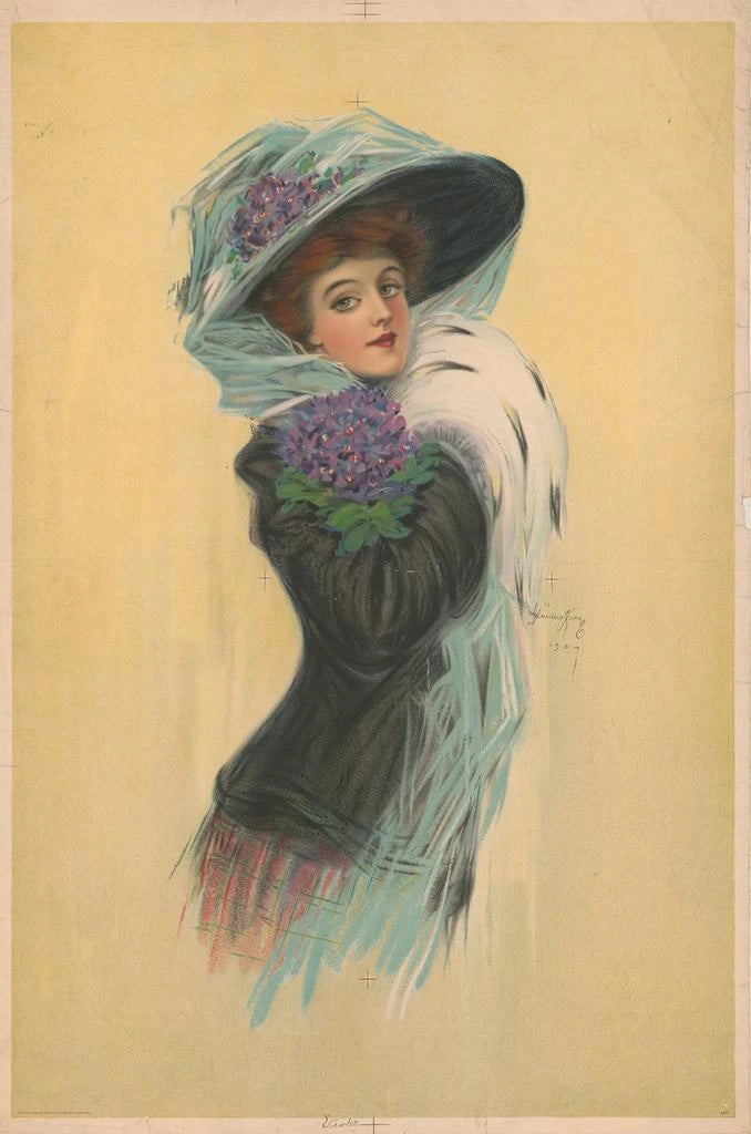 Hamilton King, joka toimi 1900-luvun alussa, erottui ainutlaatuisella lähestymistavallaan muotokuvaukseen. Art Nouveau -vaikutteinen tyyli korostaa orgaanisia muotoja ja kirkkaita värejä. King omisti uransa vangitakseen aiheidensa olemuksen, erityisesti naiseuden kauneuden. Hänen teoksiaan on laajalti esitelty ja arvostettu, mikä on edistänyt modernin muotokuvan kehittymistä. "Violet" kuvastaa täydellisesti hänen lahjakkuuttaan ja sitoutumistaan taiteelliseen esittämiseen, joka yhdistää perinteitä ja nykyaikaa, samalla juhlistaen feminiinisyyttä.
