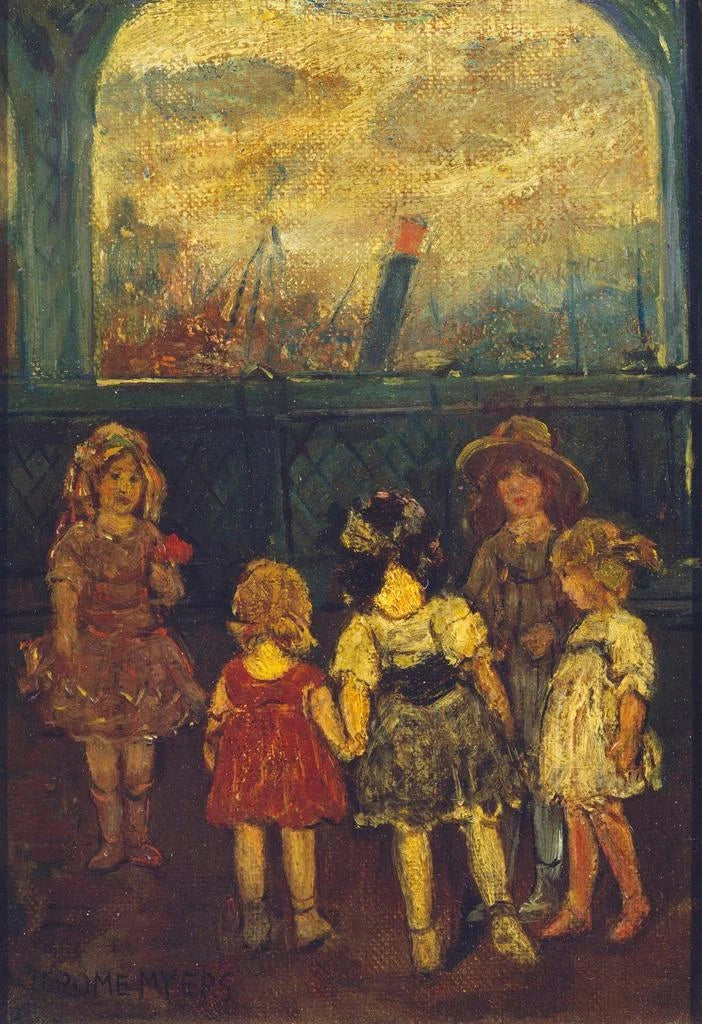 Jerome Myers, joka toimi 1900-luvun alussa, on yhdysvaltalainen taiteilija, joka tunnetaan kaupunkielämän ja vapaa-ajan kohtauksien esittämisestä. Hän vaikutti impressionismin vaikutuksesta ja onnistui vangitsemaan valon ja liikkeen ainutlaatuisella herkkyydellä. Hänen teoksensa, usein keskittyen arjen teemoihin, heijastavat siirtymä- ja modernisaatioaikaa, jolloin julkiset tilat muuttuivat kohtaamisen ja vuorovaikutuksen paikoiksi. "Quai de récréation" sopii täydellisesti tähän lähestymistapaan, todistaen sosiaalisen elämän merkityksestä hänen aikansa historiallisessa kontekstissa.
