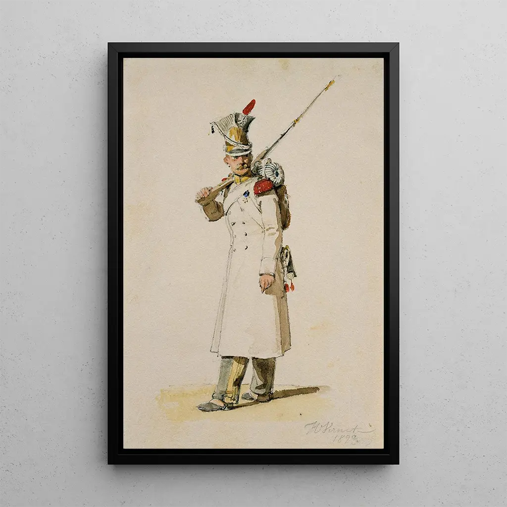 Taidegrafiikka "Grenadier de la Légion de la Vistule" Horace Vernetin teoksessa vangitsee rohkeuden ja sankaruuden ytimen. Tässä teoksessa grenadiini seisoo ylpeänä, värikkäässä univormussaan, kun punaisen ja sinisen sävyt sekoittuvat harmonisesti luoden sekä dynaamisen että juhlallisen tunnelman. Vernetin tekniikka, joka on tunnusomaista tarkkojen sivellinvedosten ja huolellisen yksityiskohtien huomioimisen ansiosta, herättää eloon jokaisen elementin, olipa kyseessä sotilaan päättävä ilme tai hänen univormunsa rikkaat tekstuurit. Tämä taidegrafiikka herättää kansallisen ylpeyden ja sitoutumisen tunteen, kuljettaen katsojan aikaan, jolloin rohkeutta juhlistettiin.