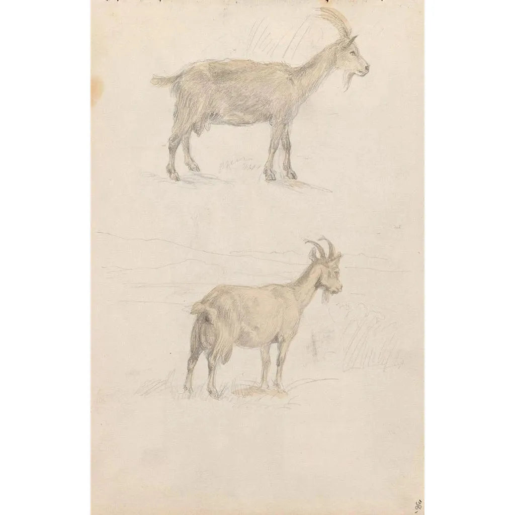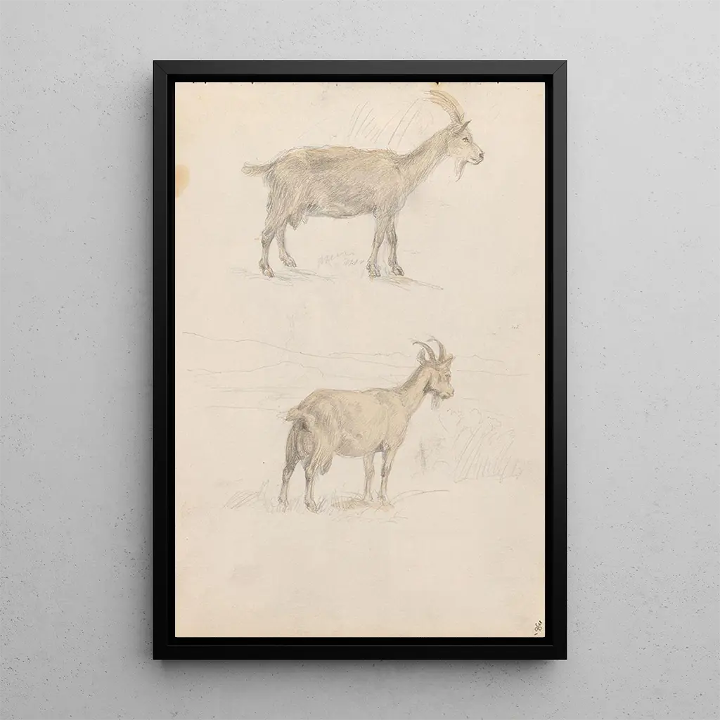 Chèvres : bucolinen kohtauksen rauhallisuutta huokuva taidegrafiikka