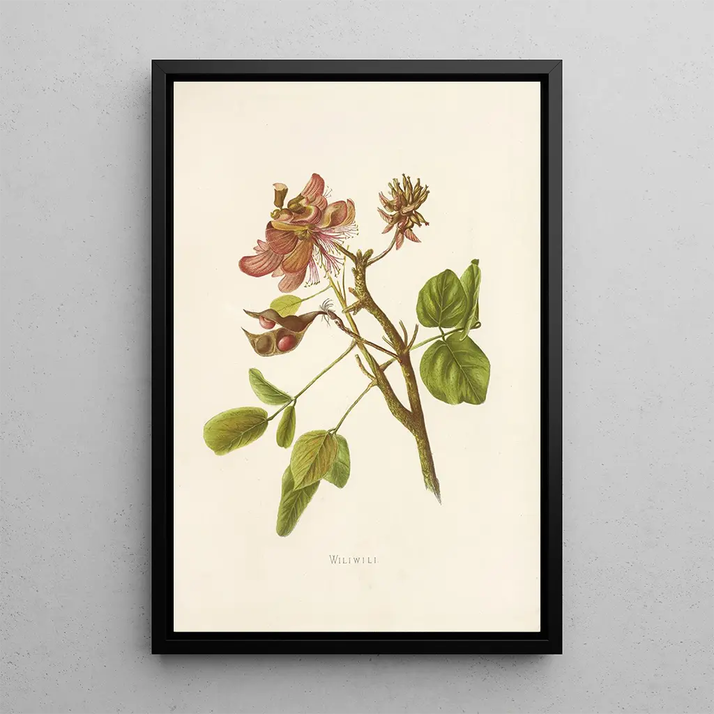 La taidegrafiikka Wiliwili Isabella McHutcheson Sinclairista sukelsimme elinvoimaisiin maailmoihin, joissa luonto ilmaisee itseään loistokkaasti. Värikkäät vihreän ja punaisen sävyt sekoittuvat harmonisesti, viitaten trooppisen kasviston rikkauksiin. Vesiväritekniikka, jota käytetään hienovaraisesti, luo hienovaraisia sävyjä, jotka herättävät jokaisen lehden ja terälehden eloon. Teoksen yleinen tunnelma kutsuu rauhalliseen pohdintaan, ikään kuin voisi melkein kuulla tuulen kuiskauksen oksien lomasta. Sinclair onnistuu vangitsemaan luonnollisen kauneuden ytimen, tarjoten ikkunan rehevään maailmaan.
