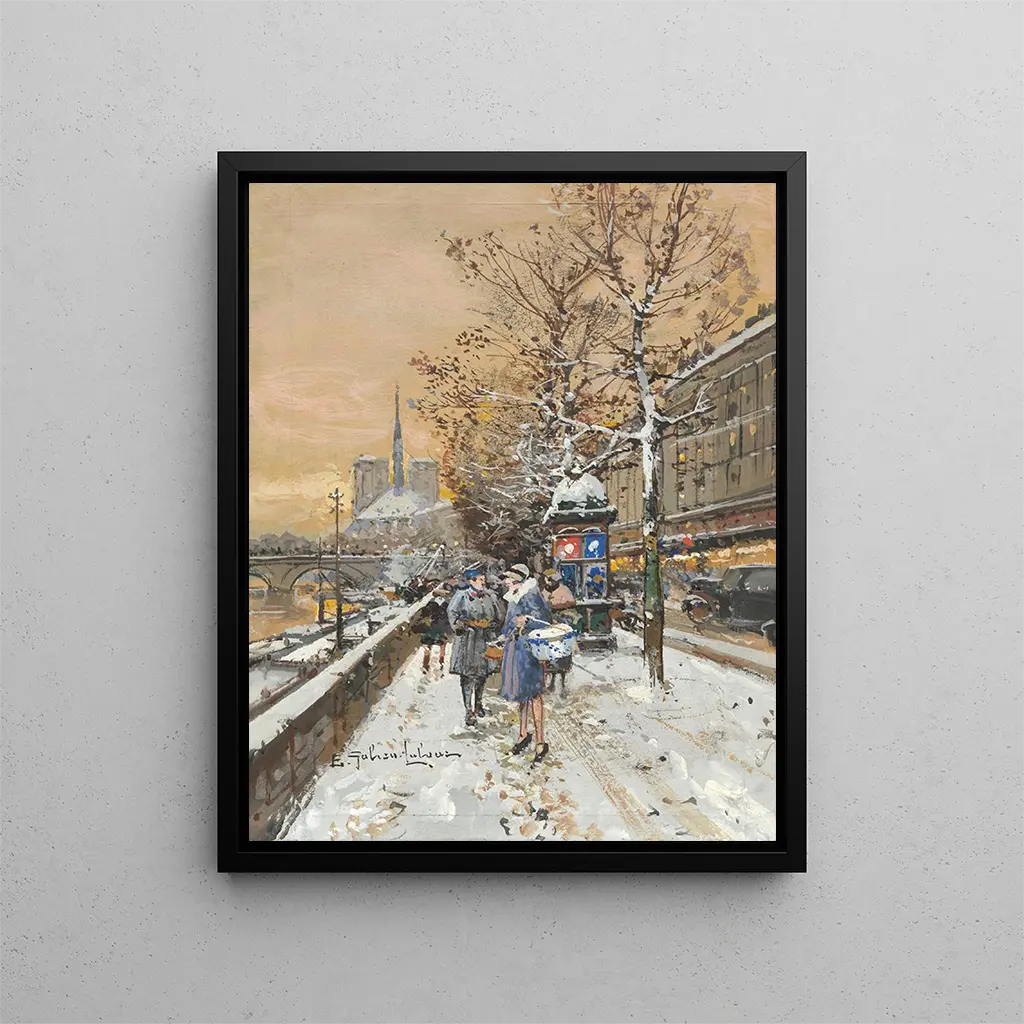 Impressionismin rikkaassa maailmassa Eugène Galien-Lalouen "Un rendez-vous au bord de la Seine" erottuu kyvyllään vangita hetkellisen tunnelman olemus. Tämä teos, täynnä valoa ja liikettä, kuvaa pariisilaisen elämän kohtauksen, jossa joki ja sen rannat muodostavat ihmisten vuorovaikutuksen näyttämön. Tämän taidetulosteen kautta taiteilija kutsuu meidät syvälle eläväiseen ilmapiiriin, jossa aika vaikuttaa pysähtyneeltä. Seine, pääkaupungin elävä verisuoni, muuttuu peiliksi sen ajan yhteiskunnasta, paljastaen sekä maisemien kauneuden että ihmisten välisen rikkauden.