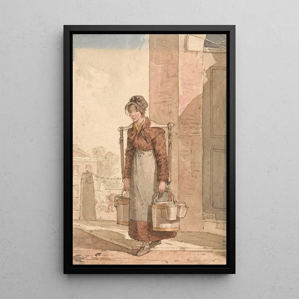 Tässä taidegrafiikka-uutoksessa "Une laitière" John Augustus Atkinson tallentaa arkipäivän hetken poikkeuksellisen hienovaraisesti. Kompositio korostaa nuorta naista, joka keskittyy tehtäväänsä, ympärillään elementtejä, jotka viestivät yksinkertaisuudesta ja arjen kauneudesta. Pehmeät ja luonnolliset värit, kermansävyistä vihreän sävyihin, luovat rauhoittavan tunnelman. Vesiväritekniikka, kevyine asteittaisine sävyvaihteluineen ja läpinäkyvyydellään, mahdollistaa valon hienovaraisen esittämisen, korostaen kohtauksen rauhallisuutta. Tämä taidegrafiikka kutsuu mietiskelyyn, vieden meidät hetkeksi ajasta riippumattomaan hetkeen.