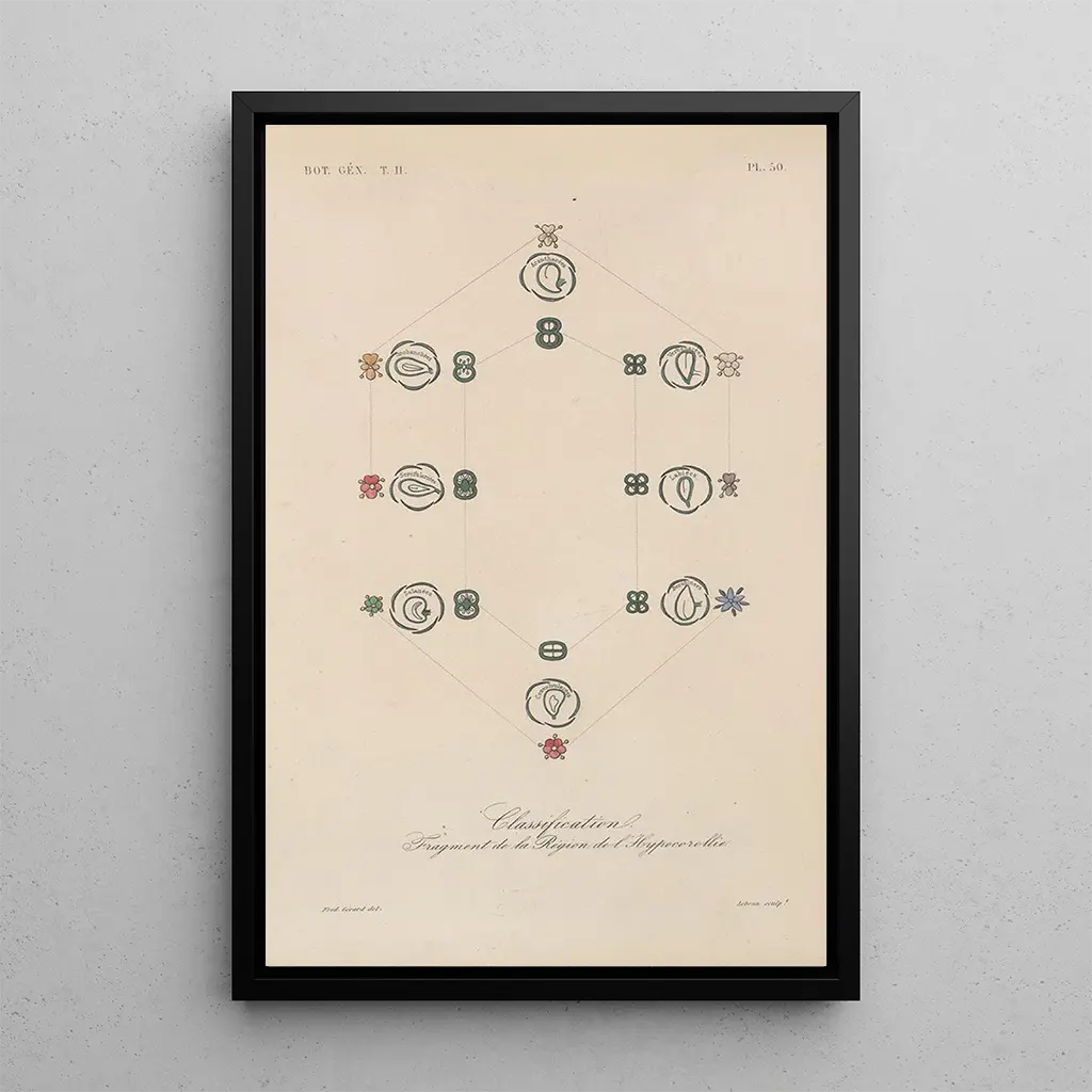 Traité de botanique générale Pl101 -taidegrafiikan reproduktio on koristeellinen kappale, joka kaunistaa mitä tahansa tilaa, olipa kyseessä olohuone, toimisto tai makuuhuone. Sen tulostuslaatu ja väritarkkuus tekevät siitä täydellisen valinnan niille, jotka haluavat lisätä luonnon elementtejä sisustukseensa. Tämän taidegrafiikan esteettinen viehätys piilee sen kyvyssä muuttaa seinä taidegalleriaksi kasvitieteellisestä taiteesta. Valitsemalla tämän teoksen, teet hienostuneen sisustuksen valinnan, joka heijastaa maailman kasviston kauneutta ja monimuotoisuutta.