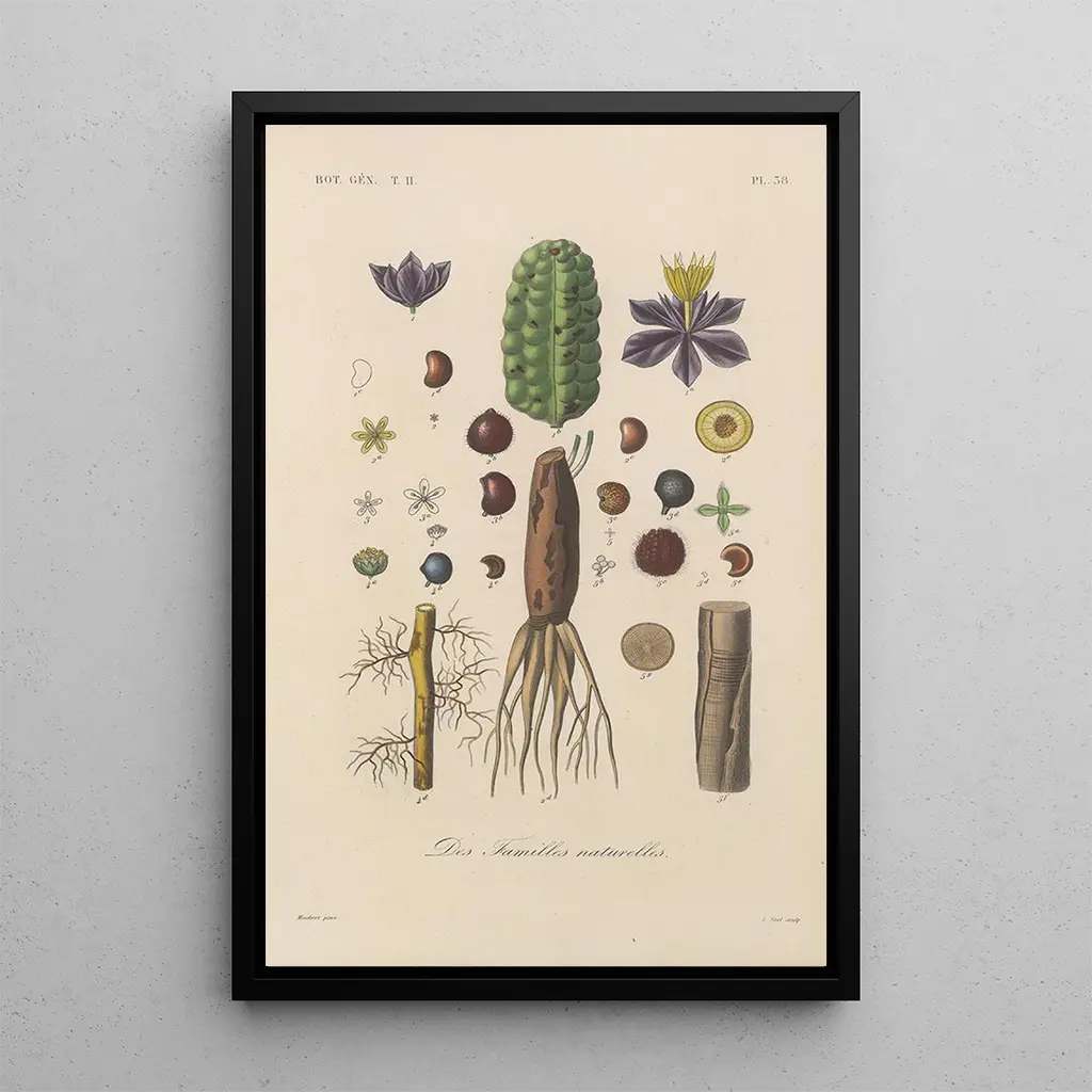 Le tableau Traité de botanique générale Pl089 de François Hérincq se présente comme une célébration de la richesse de la flore. Chaque plante, soigneusement représentée, révèle des détails fascinants, des textures délicates aux nuances de couleurs subtiles. La technique de l’aquarelle permet de donner vie à ces spécimens botaniques, créant une atmosphère à la fois sereine et captivante. L'œuvre invite à la contemplation, à l'émerveillement devant la beauté naturelle, tout en offrant un aperçu des merveilles que la botanique a à offrir.