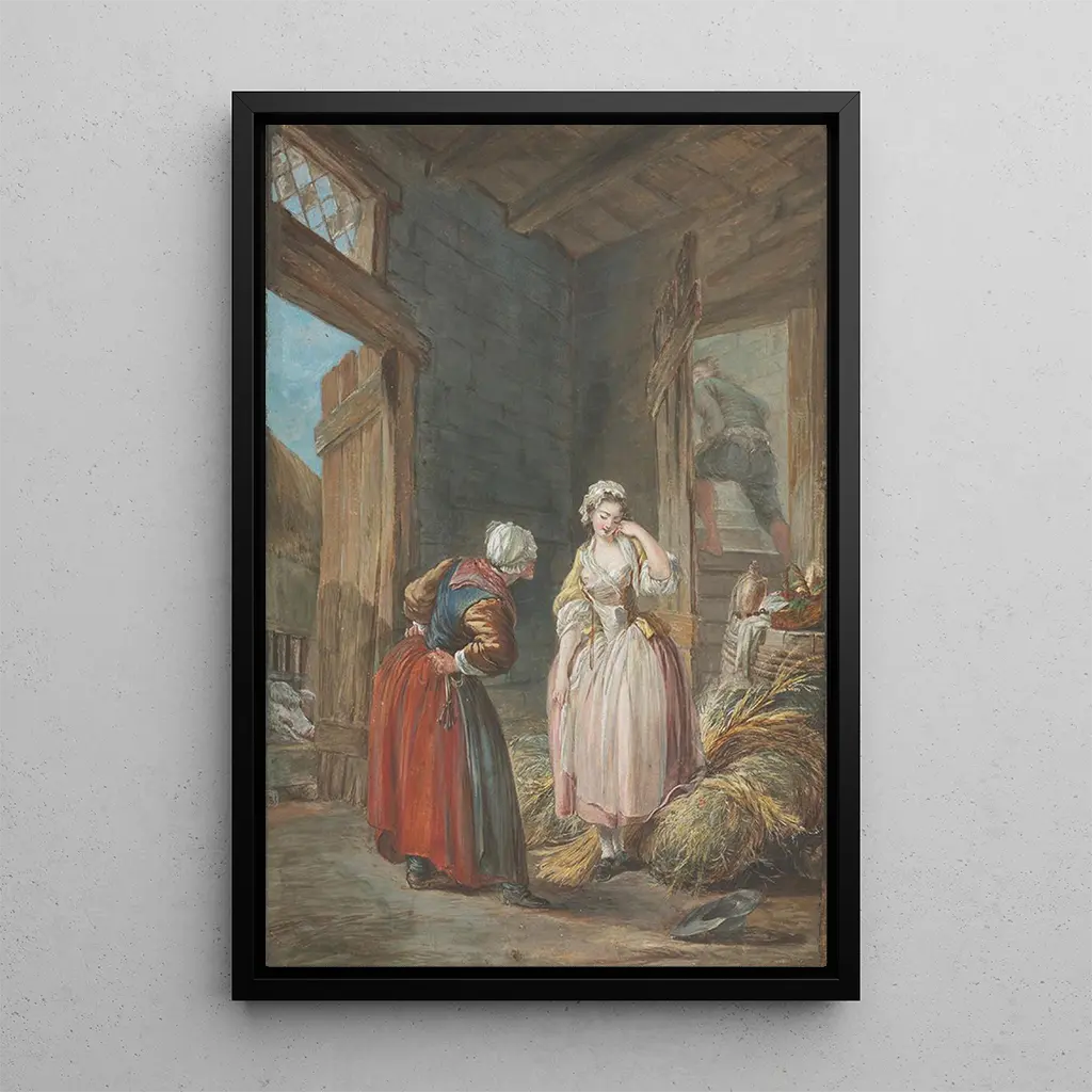 Dans cette œuvre délicate, Pierre-Antoine Baudouin capture un moment fugace entre deux amants, enveloppés dans une atmosphère de tendresse et de mystère. Les couleurs douces et les jeux de lumière créent une ambiance romantique, tandis que la composition harmonieuse guide le regard vers les protagonistes. La technique de l'artiste, mêlant finesse des détails et fluidité des formes, évoque une émotion palpable, rendant cette taidegrafiikka des Amants surpris particulièrement touchante. Chaque élément de la toile, des drapés aux expressions, contribue à une narration visuelle qui invite à la contemplation et à l'évasion.