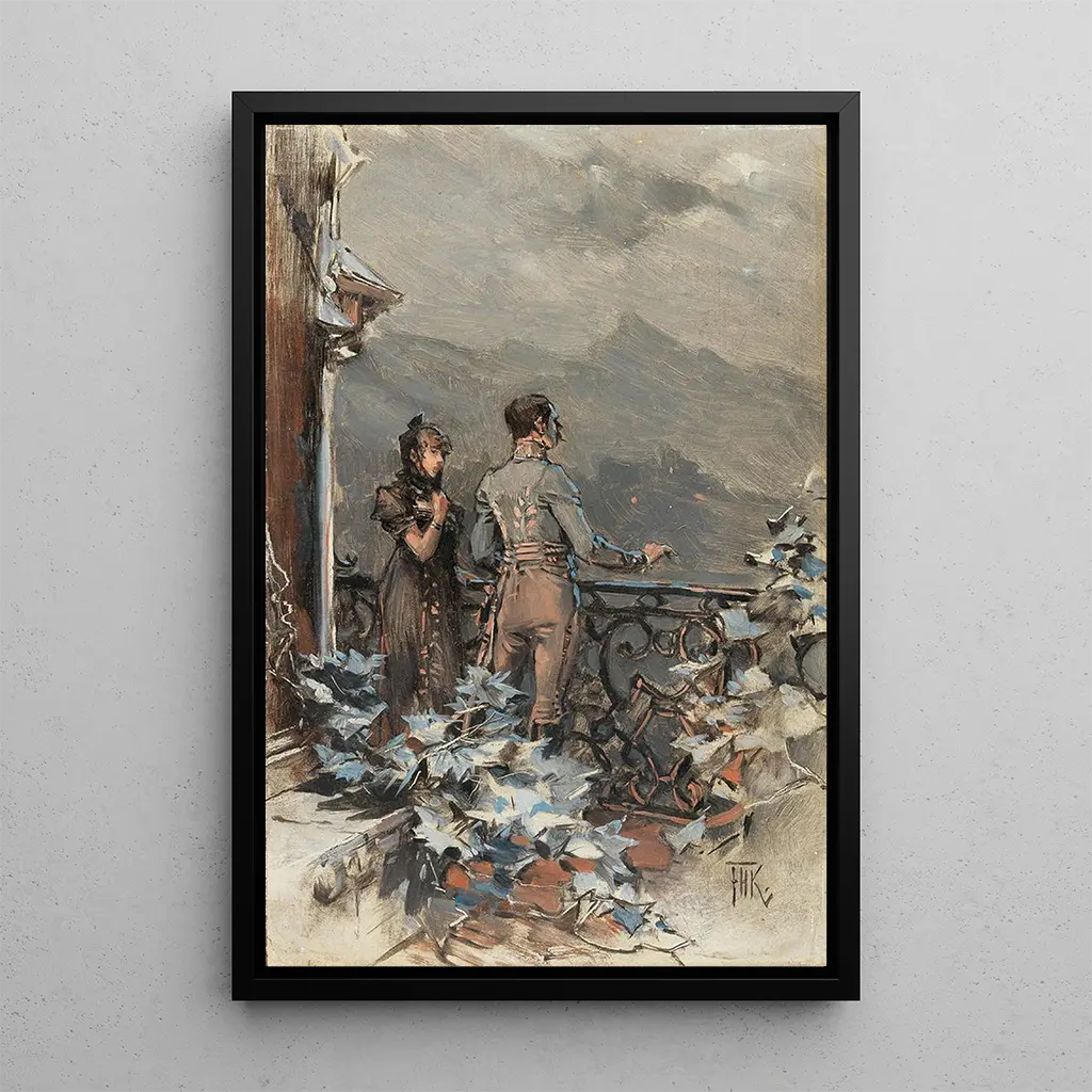 "**Nocturne**" -teoksessa Frederik Hendrik Kaemmerer johdattaa meidät salaperäiseen tunnelmaan, jossa varjot kietoutuvat valoon. Tämän teoksen herkkä sommittelu viittaa yölliseen kohtaukseen, jossa siluetit hahmottuvat hienovaraisesti tummalle taustalle. Sinisten ja mustien sävyjen syvyys luo kiehtovan ulottuvuuden, kun taas kultaisen valon pilkahdukset valaisevat joitakin elementtejä, lisäten koko teokseen lähes unenomaisen ulottuvuuden. Kaemmererin tekniikka, joka taitavasti yhdistää realismin ja lähes impressionistisen lähestymistavan, kutsuu katsojan uppoutumaan tähän rauhalliseen ja pohdiskelevaan ilmapiiriin.