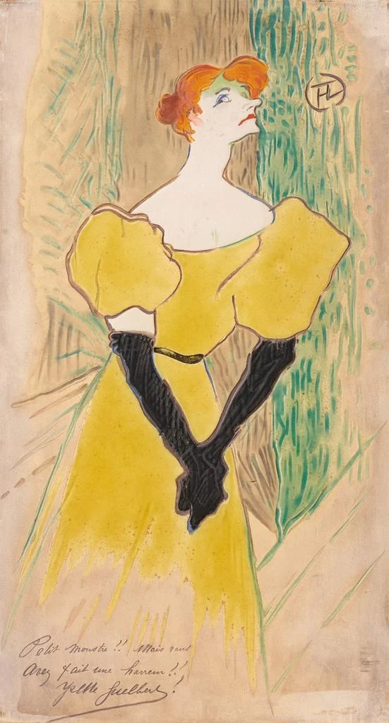 Henri de Toulouse-Lautrec, syntynyt 1864, tunnetaan yhtenä aikansa vaikutusvaltaisimmista taiteilijoista. Hänen uransa, vaikka lyhyt, oli täynnä intensiivistä tutkimusta yöelämän ja pariisilaisnäytösten teemoista. Impressionismin ja post-impressionismin vaikutteet näkyvät hänen tyylissään, joka yhdistää realismia ja stilisaatiota. Toulouse-Lautrec onnistui tallentamaan Belle Époque -ajan hengen, tehden teoksistaan arvokkaita todistuksia aikansa populaarikulttuurista. Yvette Guilbert, hänen talenttinsa ja rohkeutensa ansiosta, edustaa täydellisesti tätä kultaisen aikakauden aikaa, ja hänen muotokuvansa Toulouse-Lautrecilta on kunnianosoitus hänen taiteelleen.