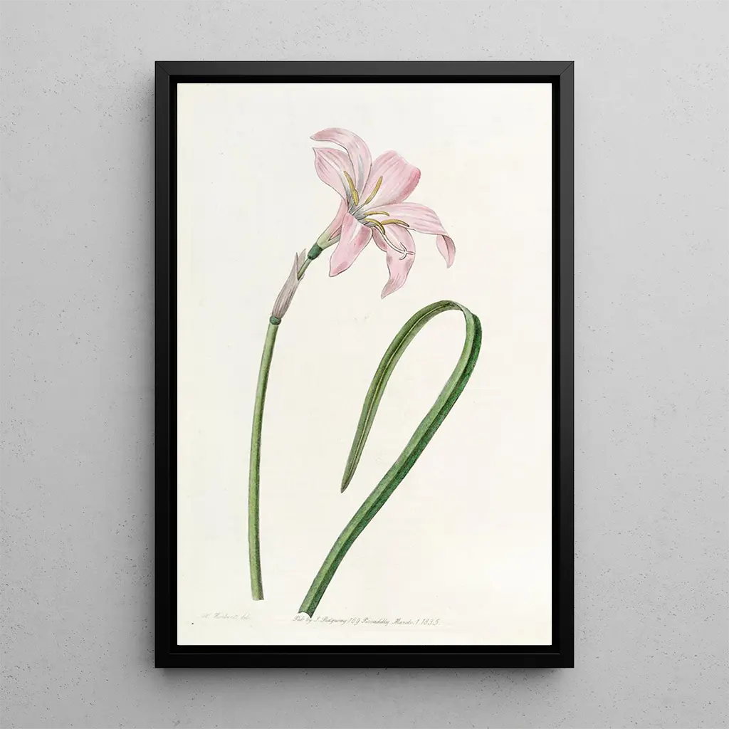 Zéphyranthe de Spofforth -taidegrafiikka, jonka on myös toteuttanut Sydenham Edwards, on herkkä kuvaus tästä harvinaisesta ja elegantista kukasta. Valkoisen ja vaaleanpunaisen sävyt kietoutuvat sulavasti yhteen, viitaten kasvin keveyteen ja haurauteen. Vesiväritekniikka mahdollistaa terälehtien läpinäkyvyyden vangitsemisen, kun taas taustan hienovarainen sävymaailma luo rauhoittavan luonnonympäristön. Tämä teos kutsuu mietiskelyyn, tarjoten hetken rauhaa niille, jotka sitä katsovat, ikään kuin heidät viedään salaperäiseen puutarhaan, jossa luonnon kauneus hallitsee.